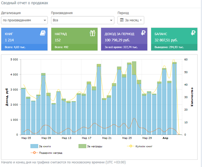 Отсюда нужно вычесть рекламу, обложки, налоги, редактуру и корректуру. Останется примерно половина. Тем не менее, это неплохой результат для начписа. И да, АТ — непрофильный сайт для ромфанта, но для меня комфортнее всего, поэтому АТ — май ван лав.