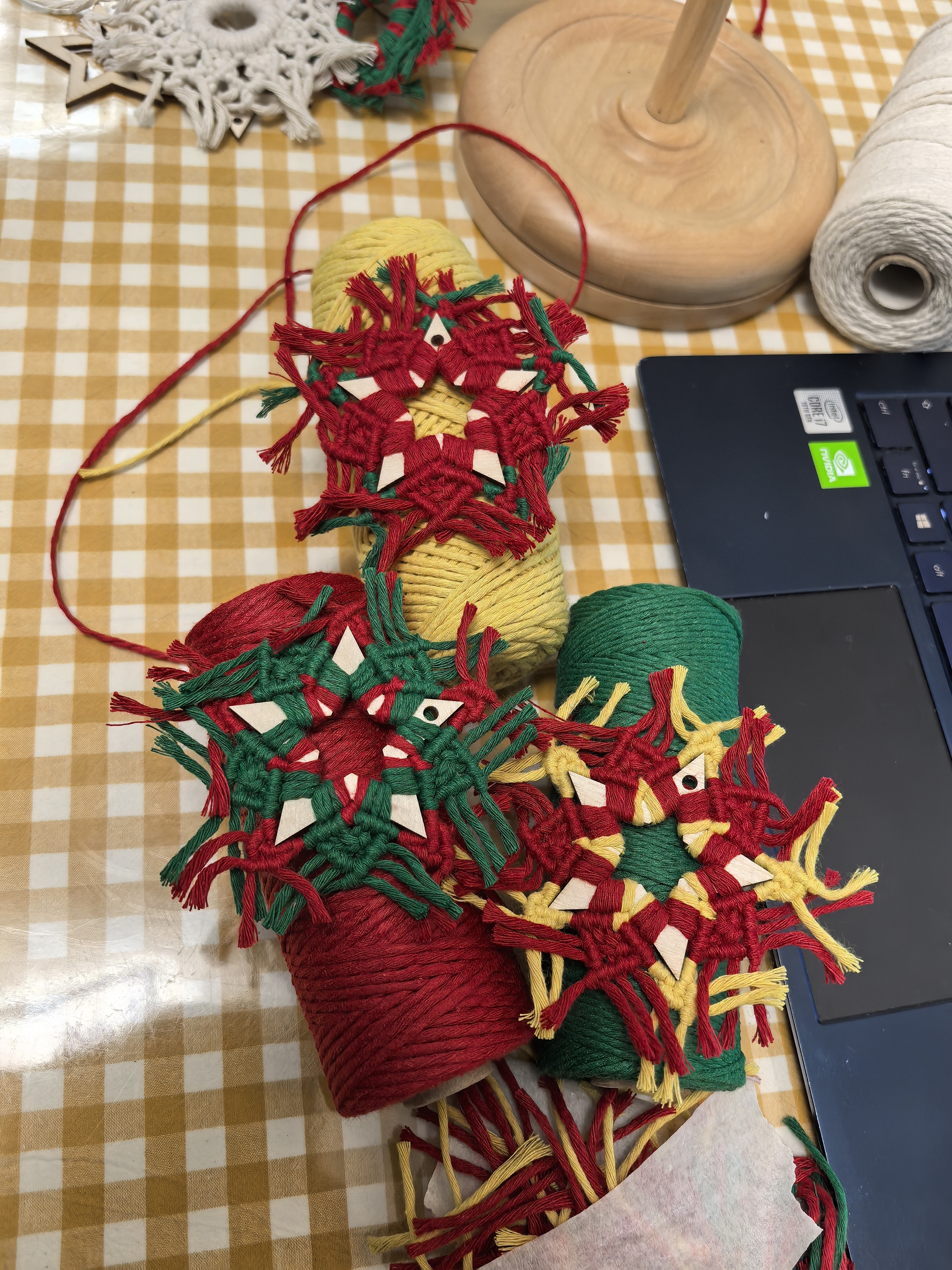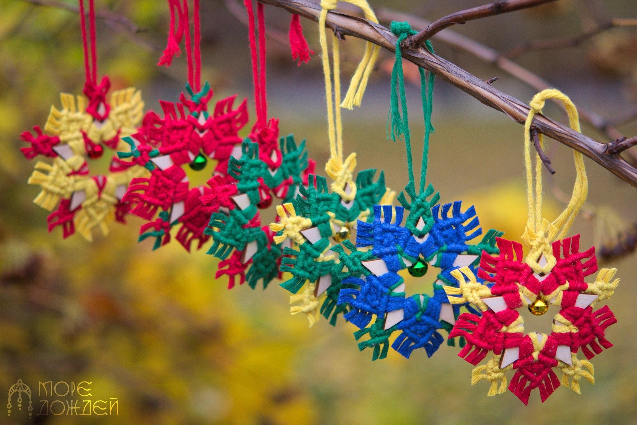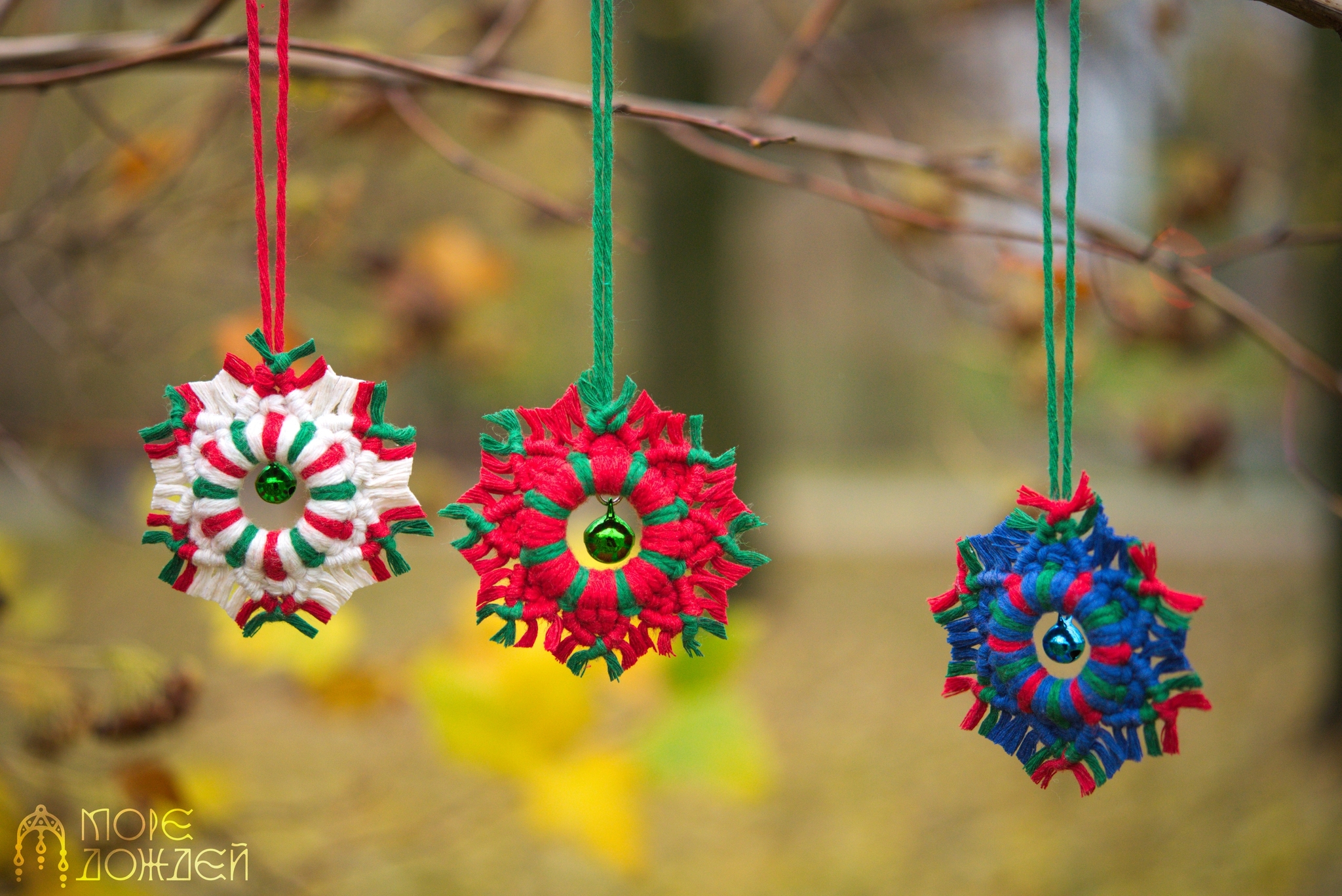 Плету игрушки в технике макраме. Вешаю бубенчики. Очень люблю цветные. Но и белые тоже красиво смотрятся.
