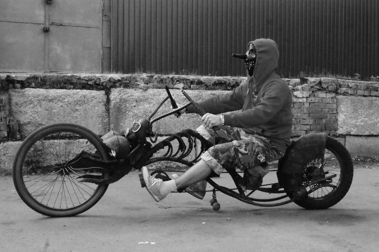 Построил его ещё в 2013 году, как интерьерный элемент для одного из баров. Но чё-т прижился под жопой, прокатал на нём сезон, сейчас он по Берлину ездит.