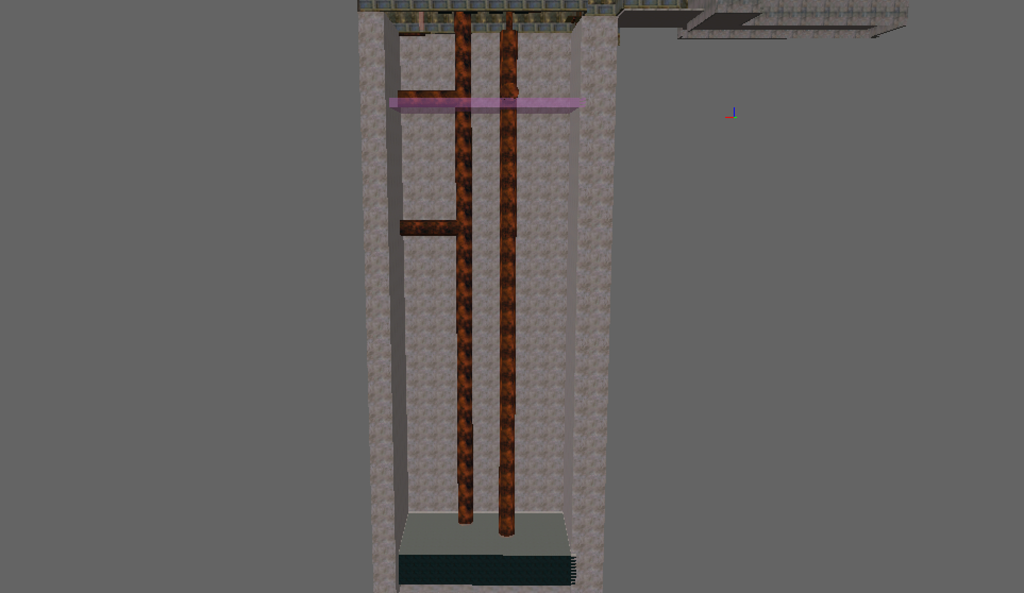 И вот еще больше странностей маппинга, которые можно увидеть в редакторе. Розовый полупрозрачный куб - невидимая стена для монстров. Маппер поставил ее специально, чтобы ихтиозавры не заплывали глубже.