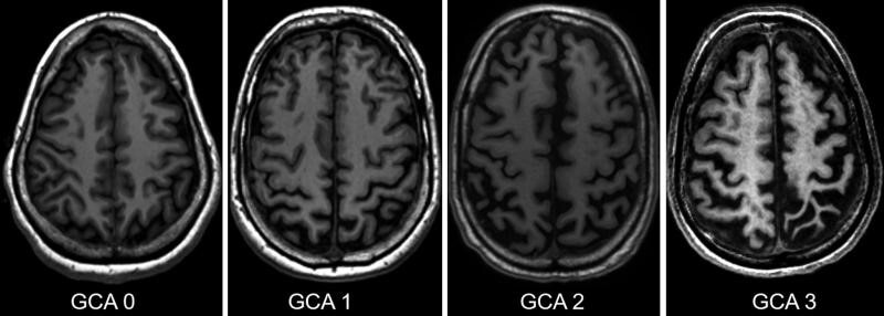 3)Шкала глобальной кортикальной атрофии (GCA-шкала) или шкала Pasquier, используемая для количественной оценки церебральной атрофии у пациентов с нейродегенеративными заболеваниями. Данная шкала предусмотривает оценку 13 разных зон головного мозга, обобщая изменения головного мозга в целом