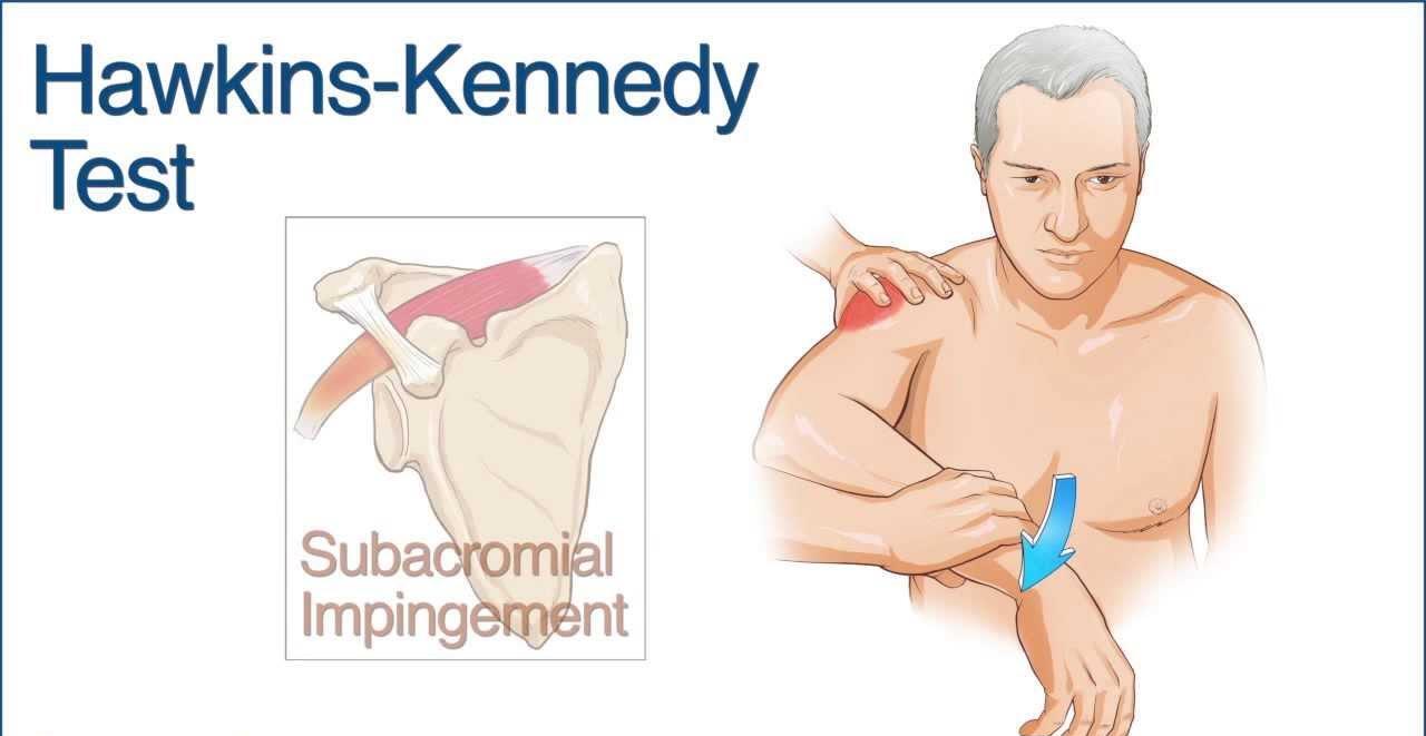 Тесты Neer и Hawkins-Kennedy (усиление боли при пассивном вращении и подъеме руки).