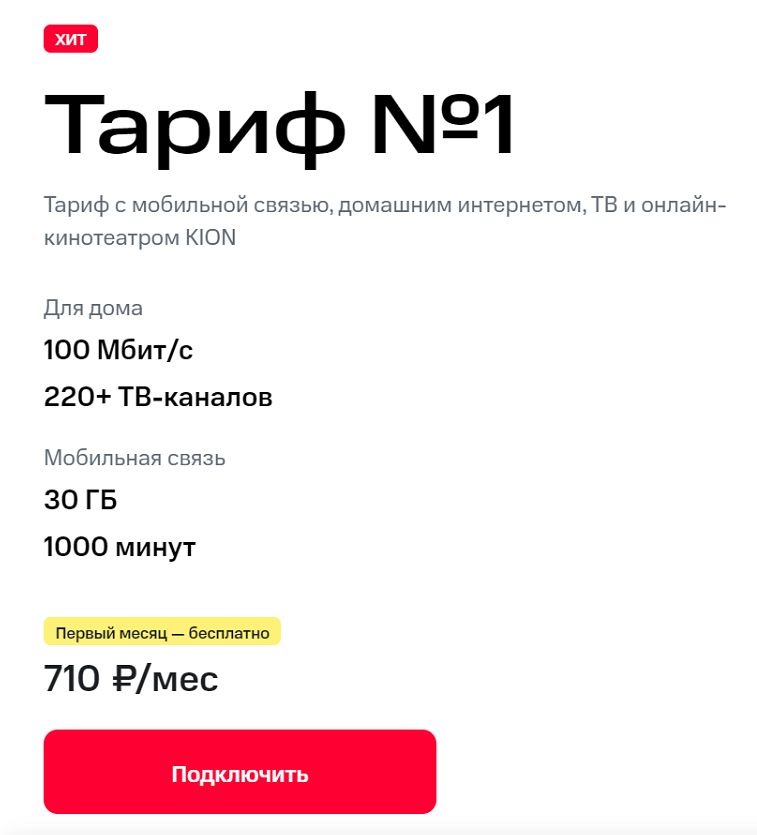 В общем, вот вам супертариф, всё включено, первый месяц аж бесплатно, потом 3 мес с 50% скидкой, а потом всего то 700р за всё. Всё честно, никаких доплат и т д.