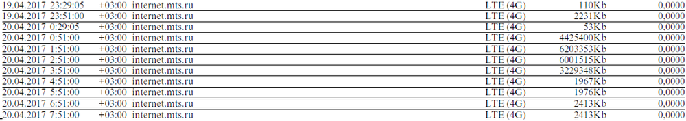 Запросив детализацию увидел, что основной расход трафика был в промежутке времени действующей услуги "Безлимит в ночное время"