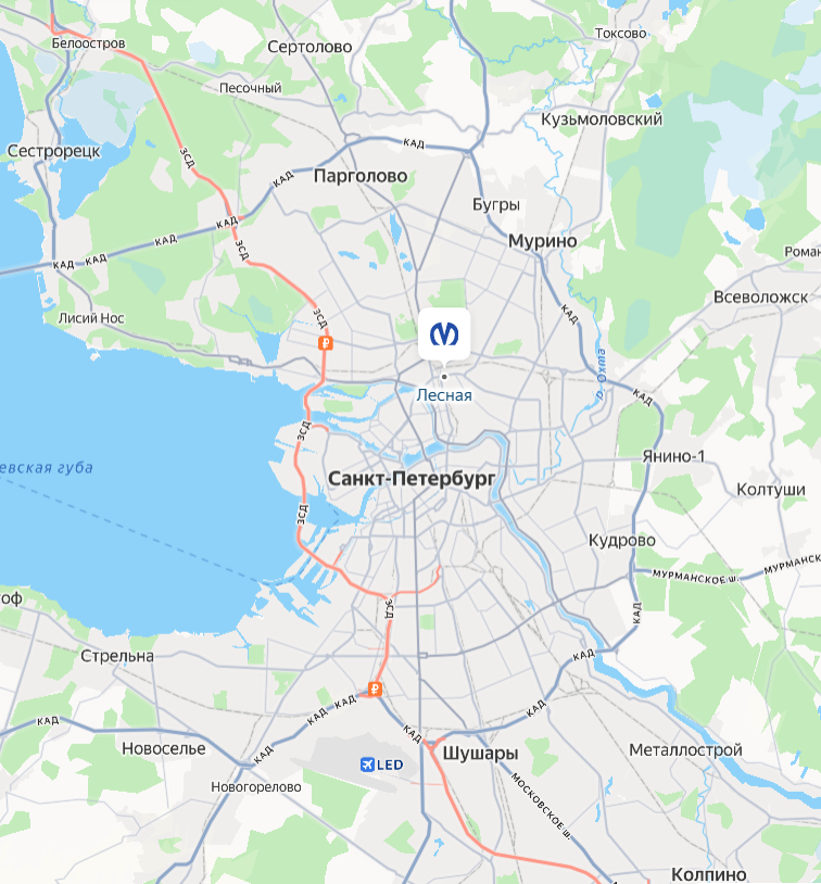 Теперь глянь, где в Питере метро "Лесная".