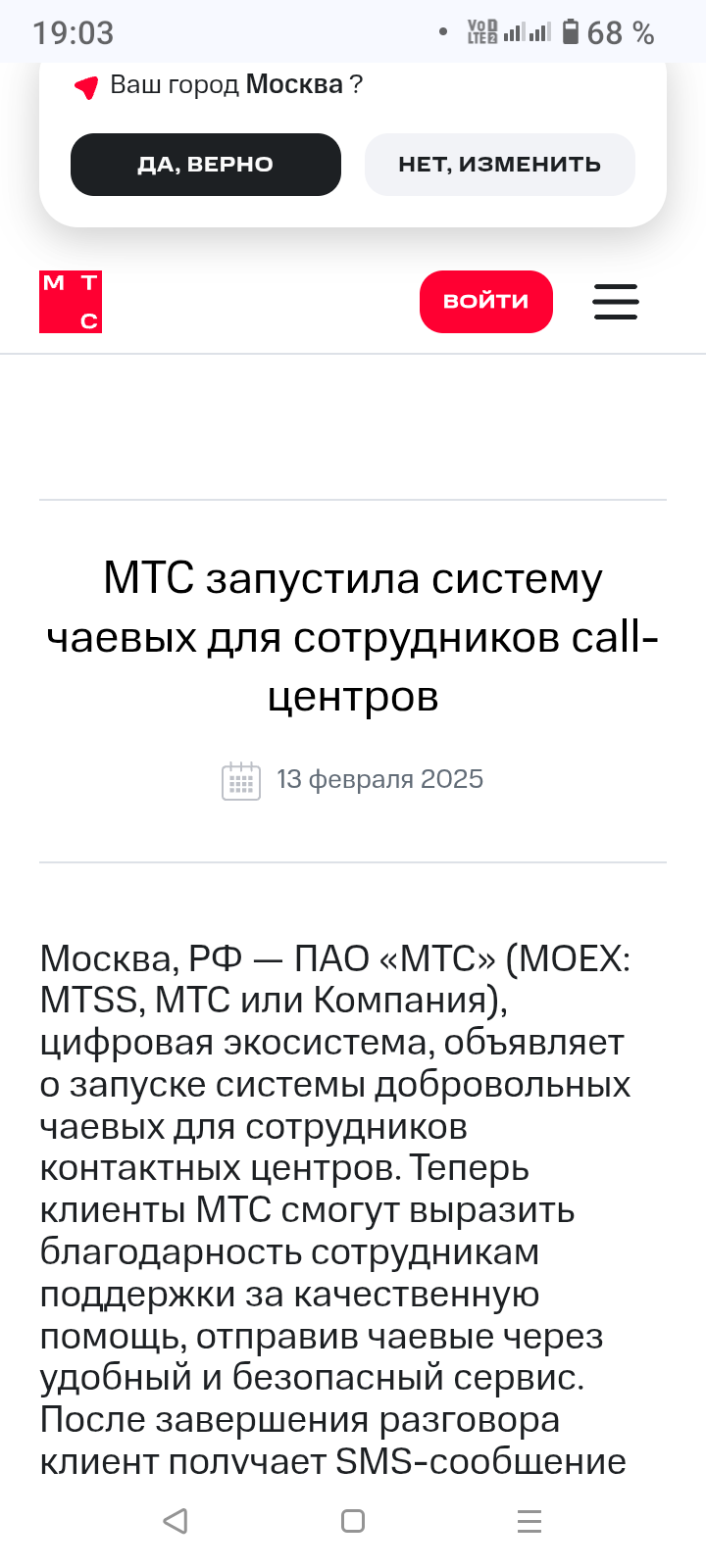 МТС предлагает оставлять чаевые оператору!