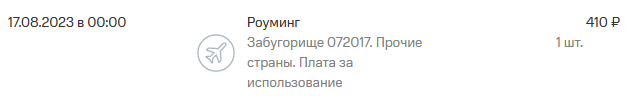 Находясь в роуминге, имел неосторожность принять телефонный звонок. Внезапно со счёта списывается 410 рублей. Смотрю в личный кабинет, вижу списание с комментарием "Забугорище 072017". Ищу такое среди подключённых услуг... Насилу нашёл. Среди бесплатных, с ценой 0 руб/день и комментарием "Подключена 26.09.2018 в 11:12". Обращаюсь в поддержку, отвечают, что "услуга была подключена вместе с тарифом" (Кто-нибудь просил? В тарифе есть свои условия роуминга), бесплатной она числится, потому что "на территории РФ она бесплатна", а вернуть деньги невозможно, поскольку услуга оказана.