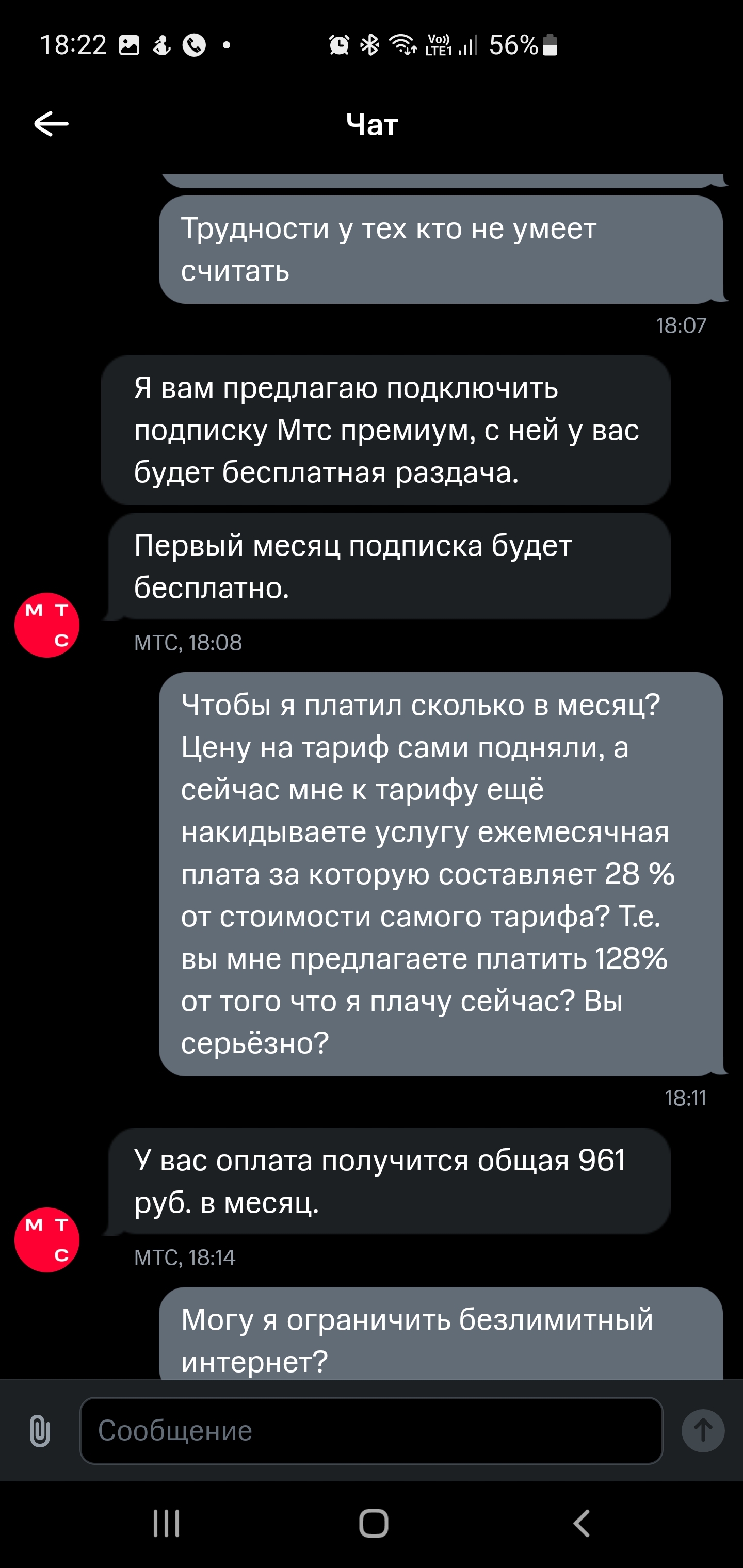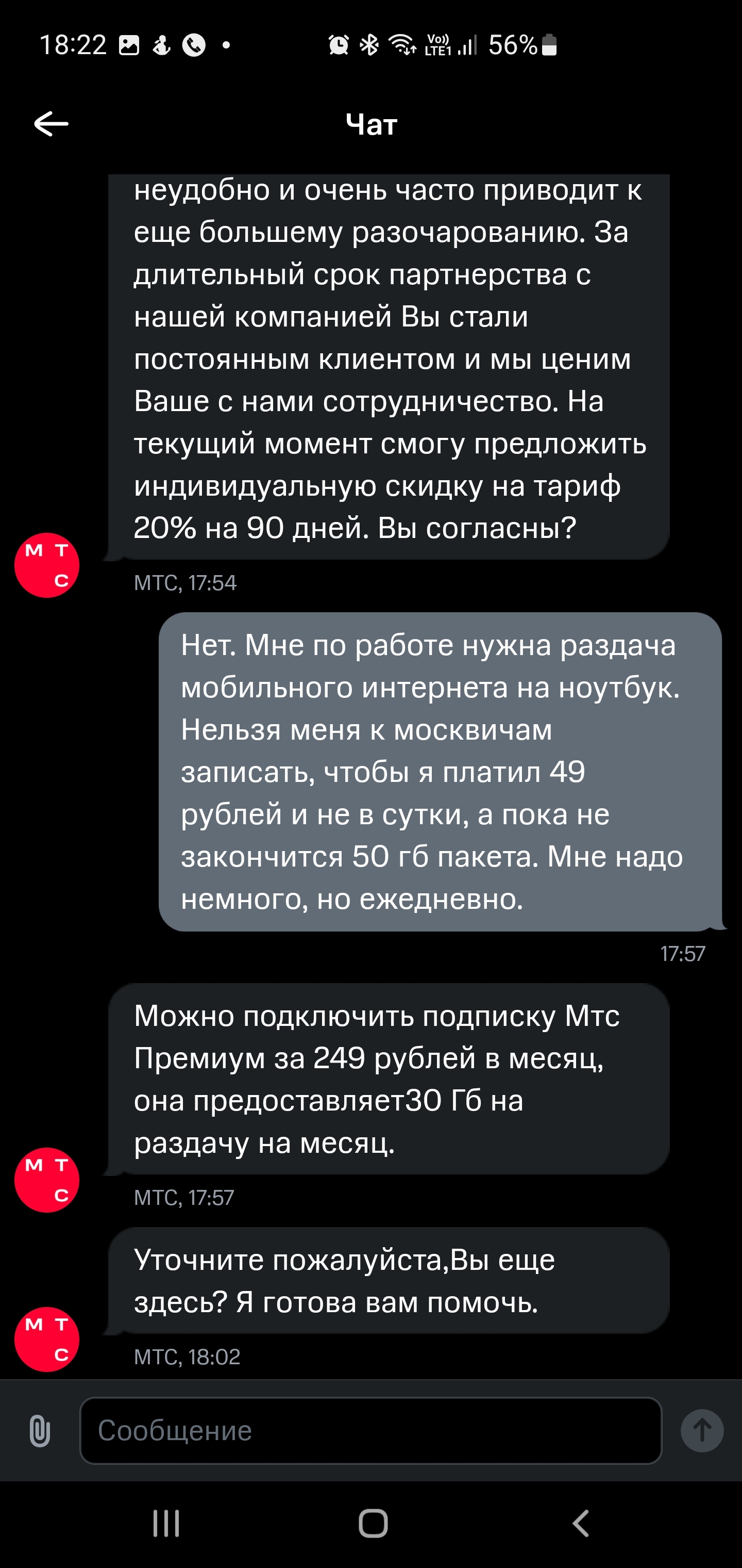 Ну, интересно. Сразу в Чат безимянного электронного бота МТС: