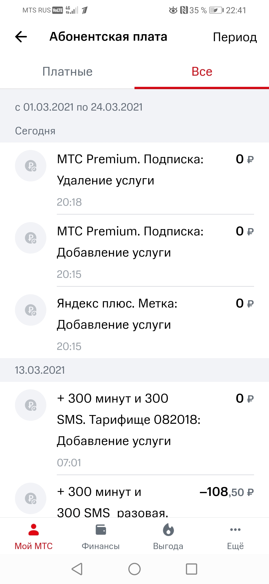 Мтс тупо наябывает клиентов, вводит их в заблуждении, при подключении услуги мтс премиум 30 дней бесплатно, но даже при 100 подключении у вас будет писаться 0 рублей в итоге с вас спишут 199р, вопрос к Мтс почему же вы пишете в услугах подключение 0 рублей а в платных сервисах смотришь - 199р Долго пытался объяснить что я подключал бесплатно а не за 199р на что один ответ бесплатно только первые 30 дней в итоге написал жалобу в роспотребнадзор, жду результатов.