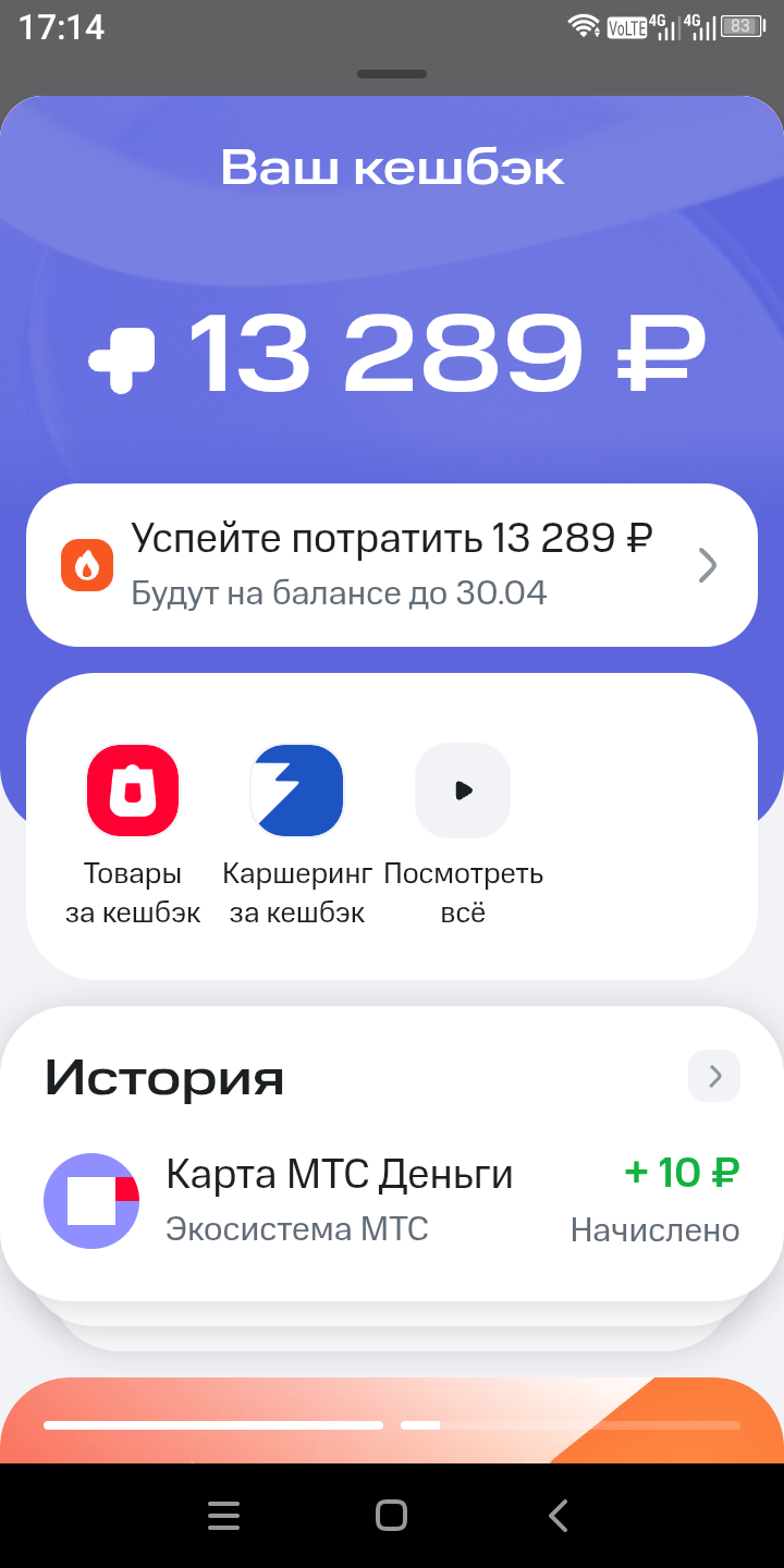 МТС-ДЕНЬГИ (ЭКСИ банк). Вывод кэшбека