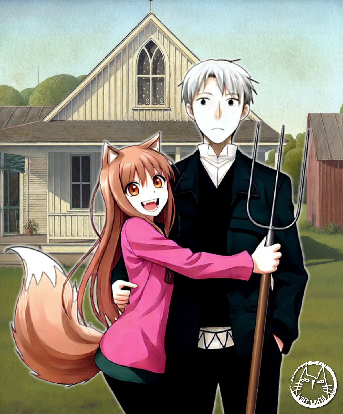 97 WarpWorld Аниме Серия Мудрая волчица Мудрая волчица, или «Однажды на Среднем Западе» 1 день назад Использована картина Гранта Вуда «Американская готика» (1930) [моё] Spice and Wolf Holo Американская готика Грант Вуд Аниме Манга Ранобэ Айова 19 3 Ещё 0