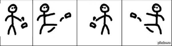 Зачем его пинать? Надо просто ногу подставить.
