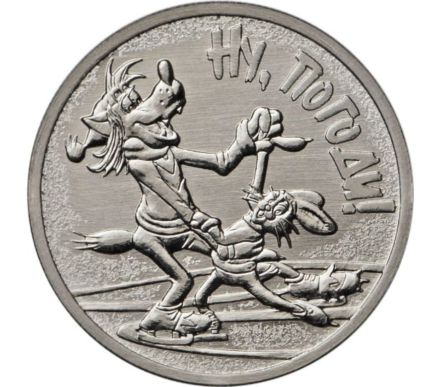 Монета 25 рублей 2018 «Ну, погоди! Волк и Заяц (Советская мультипликация)», тираж 450 000 штук, стоимость оригинала в хорошем состоянии более 2000 рублей.