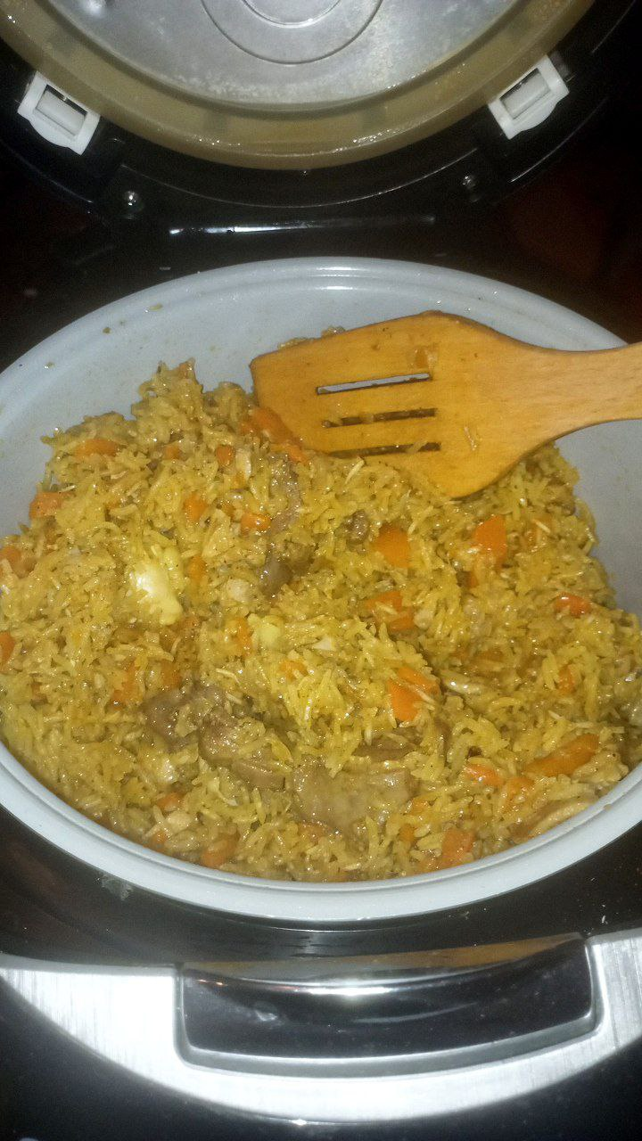 Для начала ставим мультиварку на жарку и на максимальную температуру, у меня это 180 градусов, даём нагреться минут десять. Затем закидываем сначала баранину и минут через десять курицу. На этом этапе я добавляю половину специй. У кого нет возможности взять те, что я написал (mamida), то там в составе: Паприка, барбарис красный, чеснок, зира, кориандр, куркума. По моему опыту не нужно переживать, что нет корочки у мяса, мультиварка - это всё же не казан на открытом огне и температура там не такая, оно скорее будет тушится, но это не важно, забейте на данном этапе. Затем добавляем нарезанные соломкой морковь и лук. Да, оно почти до краёв заполнит чашу, но не бойтесь, осядет. Ещё вам может показаться, что вы варите ебаный суп из овощей и мяса, когда увидите сколько жидкости выделяется, но постойте, поверьте мне, всё будет хорошо!