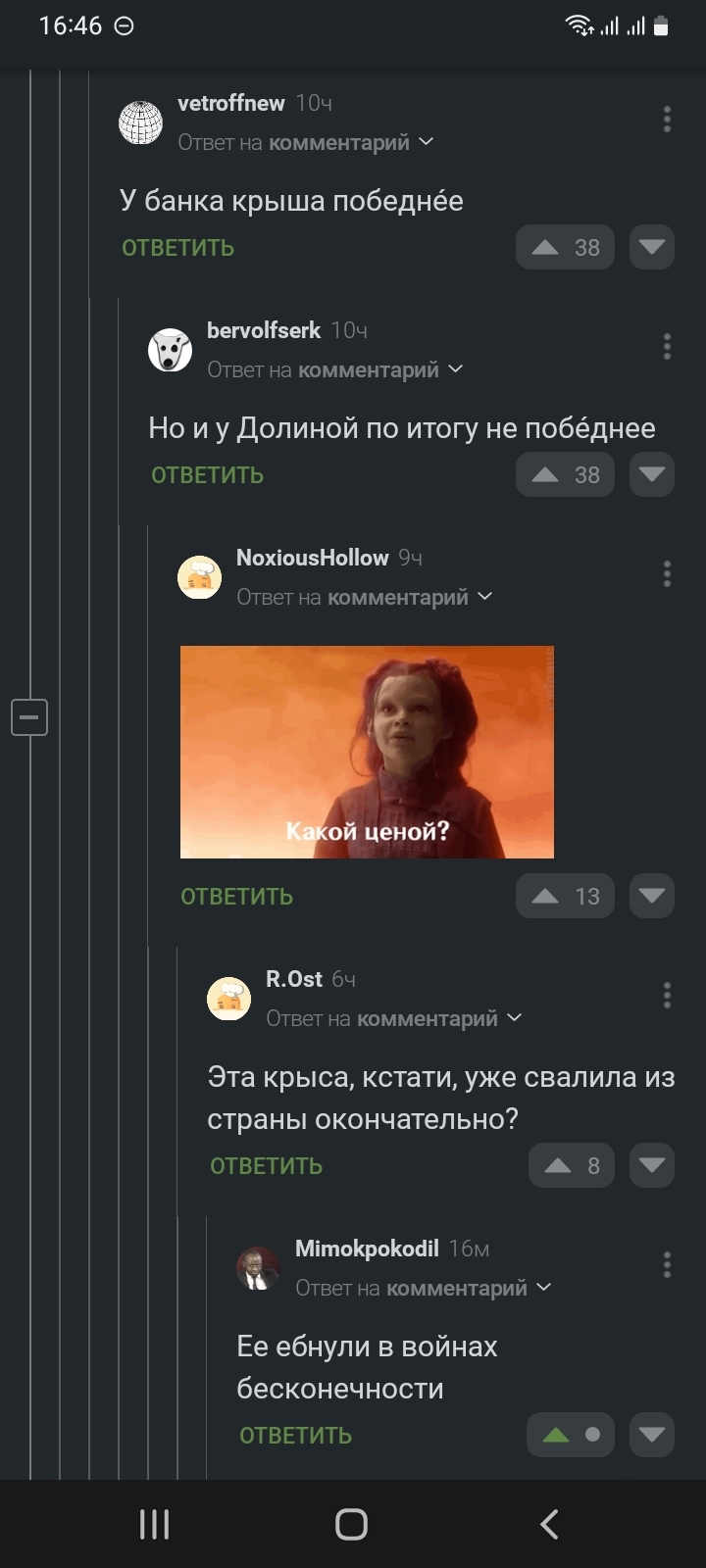 4 Svyatrigor Юмор для всех и каждого Юмор Мультивселенная) 1 день назад #comment_380719428 @Mimokpokodil втелевизоре) Мстители: Война бесконечности Комментарии Лариса Долина Суд Юмор Длиннопост 2 1 Ещё 0
