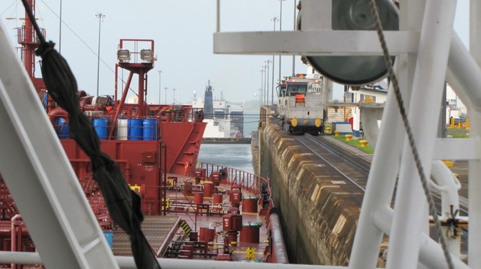 В итоге, корабль становится враспор между четырьмя или шестью электровозами. Зазор между кораблем и стенкой шлюза может быть менее метра.