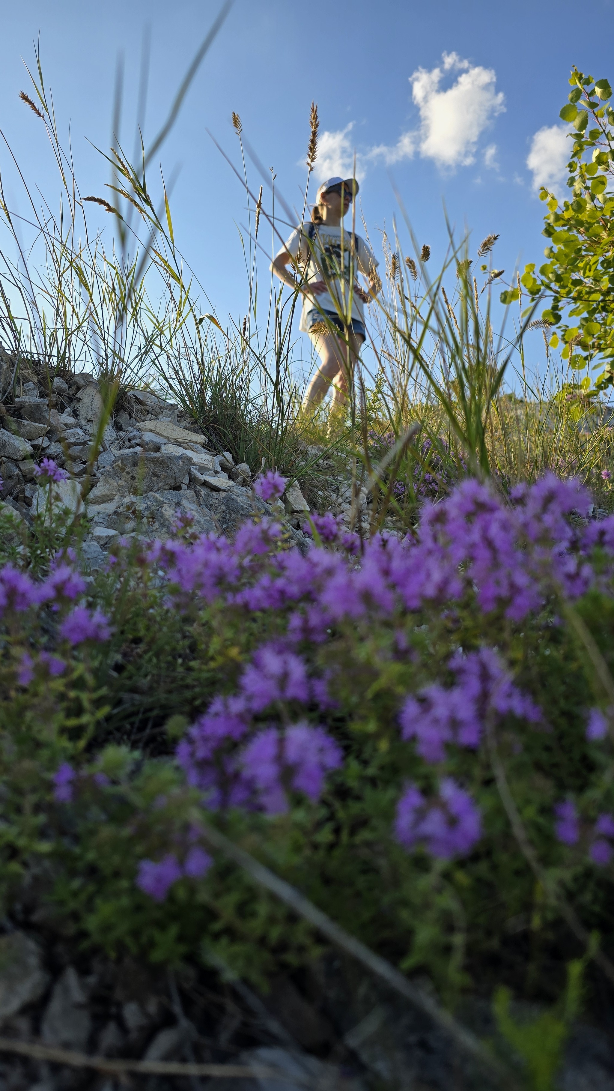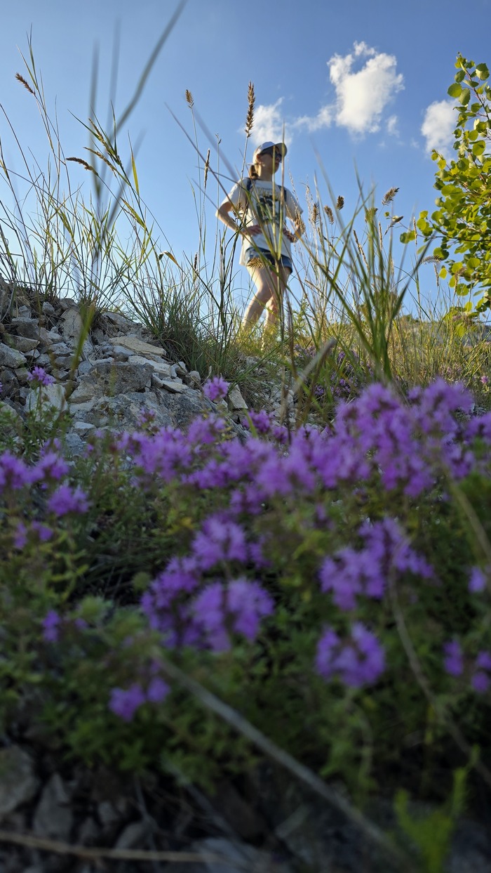 В первый день мы гуляли здесь по верху, просто шли по тропинке, фоткались, нюхали чабрец, пили чай. Через 2-3 км решили, что пора уже и спускаться, нашли один из спусков (менее крутой, чем подъем). До голубиного грота то ли не дошли, то ли не нашли спуск к нему. По низу вернулись обратно к выходу из ущелья.