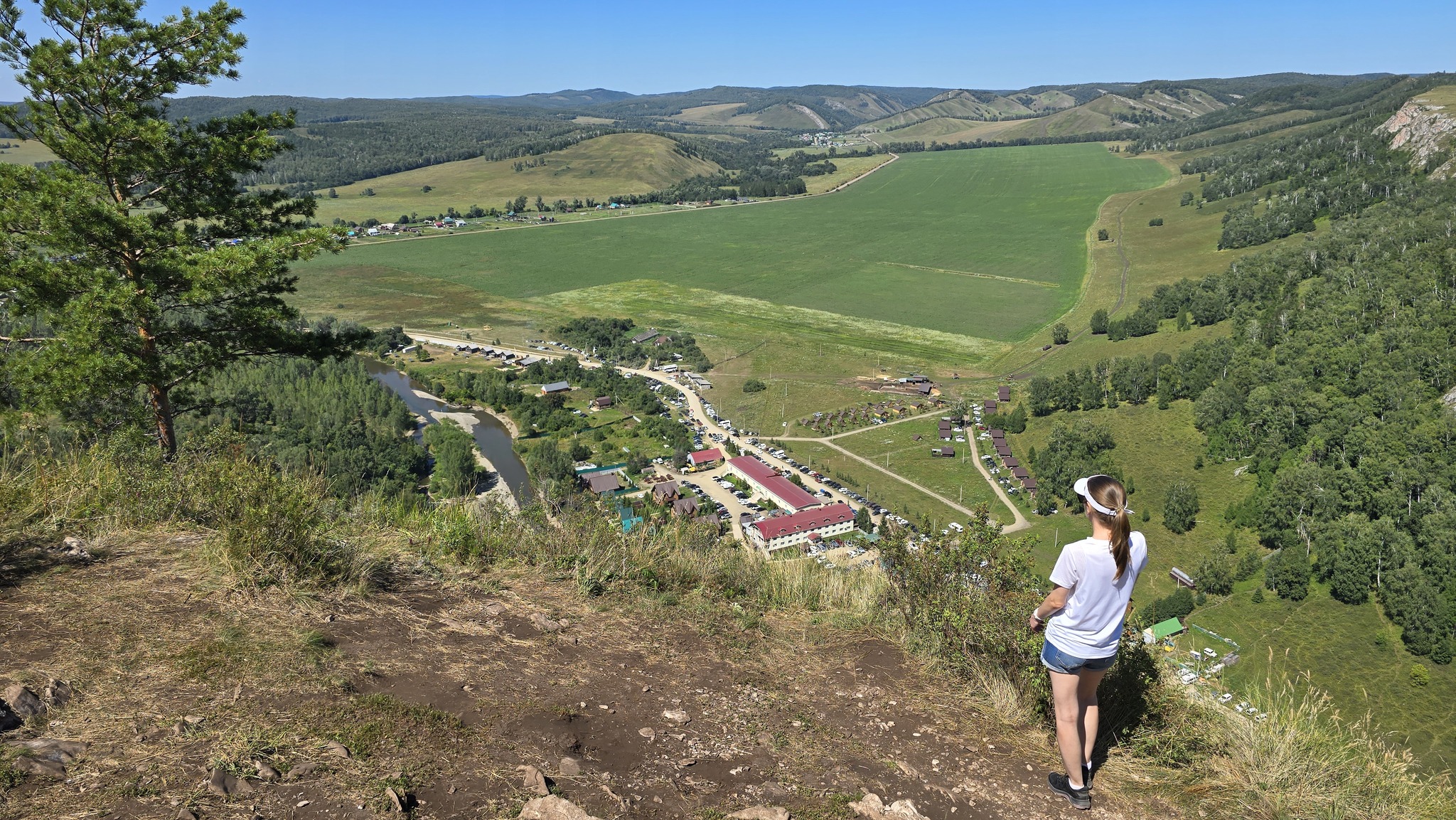 Подъем здесь менее опасный, но долго нужно идти почти все время в гору, короче, просто не нужно торопиться, чтоб не задыхаться, идти спокойно гулять. Половина тропы по тенистому лесу, половина по открытой местности. И вот наверху открывается просто бомбический вид на все ущелье: на речку, на горы (которые по левой стороне ущелья, где мы были вчера) на все домики и палатки, как будто с вертолета или квадрика! Народу здесь было мало, пара туристических групп - человек 15 бродило в общей сложности. Да и в целом по всему ущелью люди рассредоточились, не было ощущения толпы.