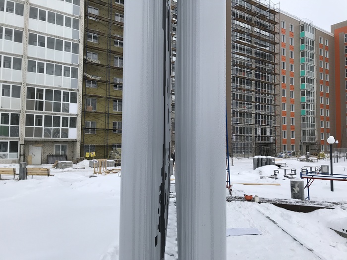 Как вы уже поняли, столбы стоят в 2 ряда.