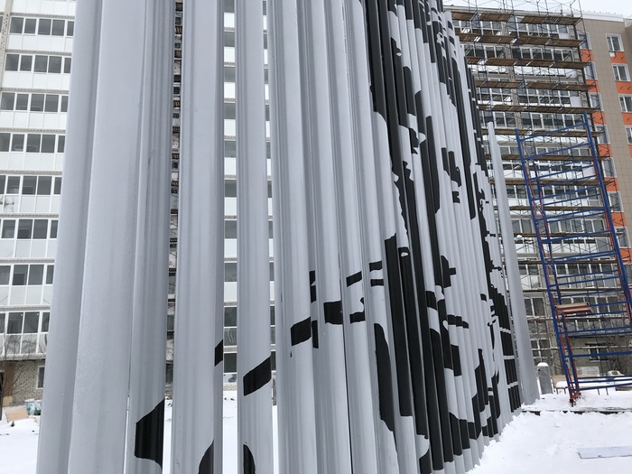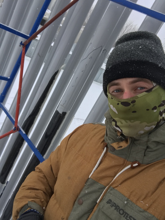 Перед вами работа, выполненная мной «под ключ» в очень сложных условиях. Диапазон температуры, в которых производились работы колебался от -6’ до -24’. Проект выполнял около 9 дней. Инструменты - валик, кисти, малярная лента.