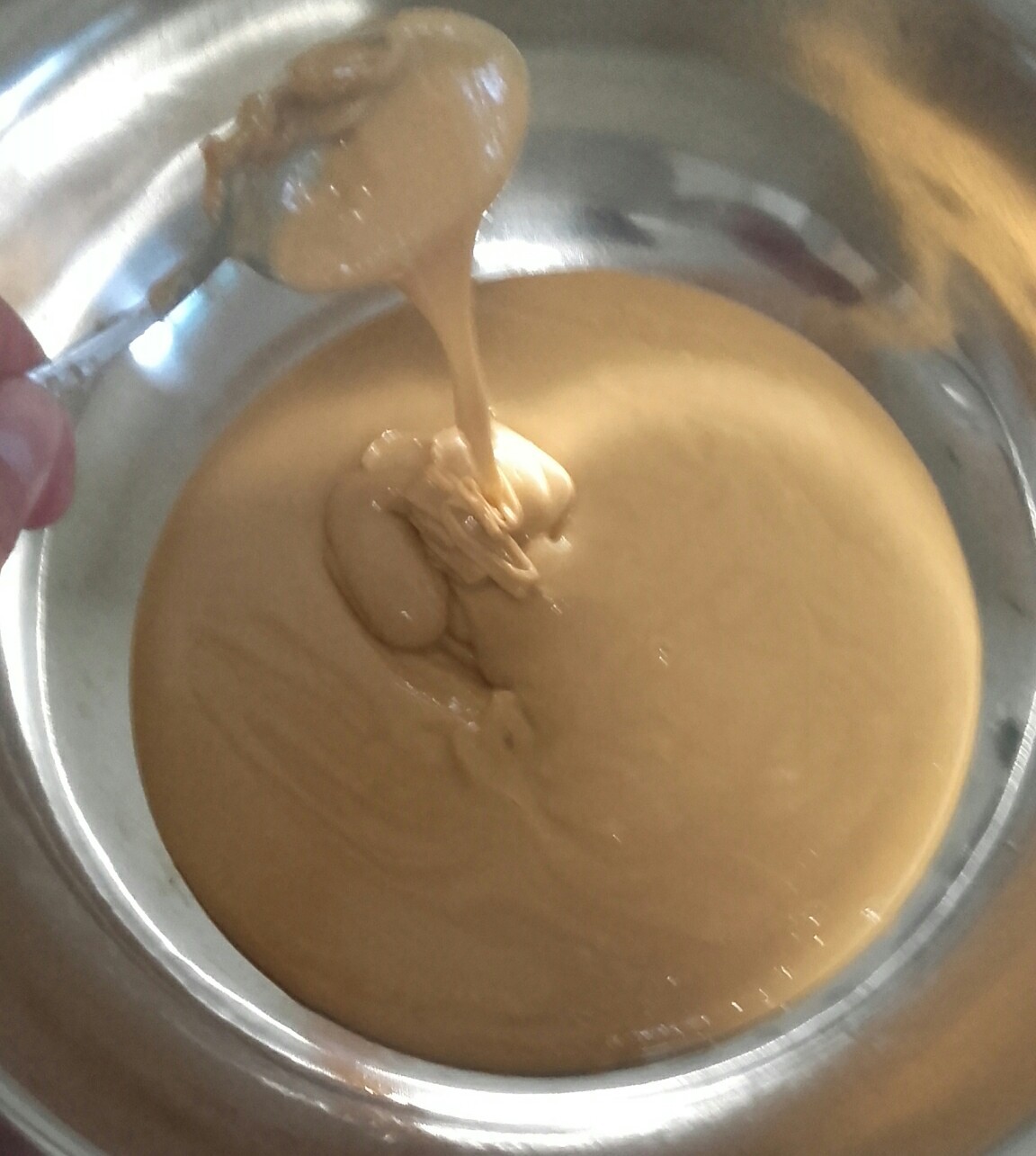 100 гр сливочного размягченного масла взбиваем на высокой скорости с 2 банками вареной сгущенки. Получится что-то вроде этого:
