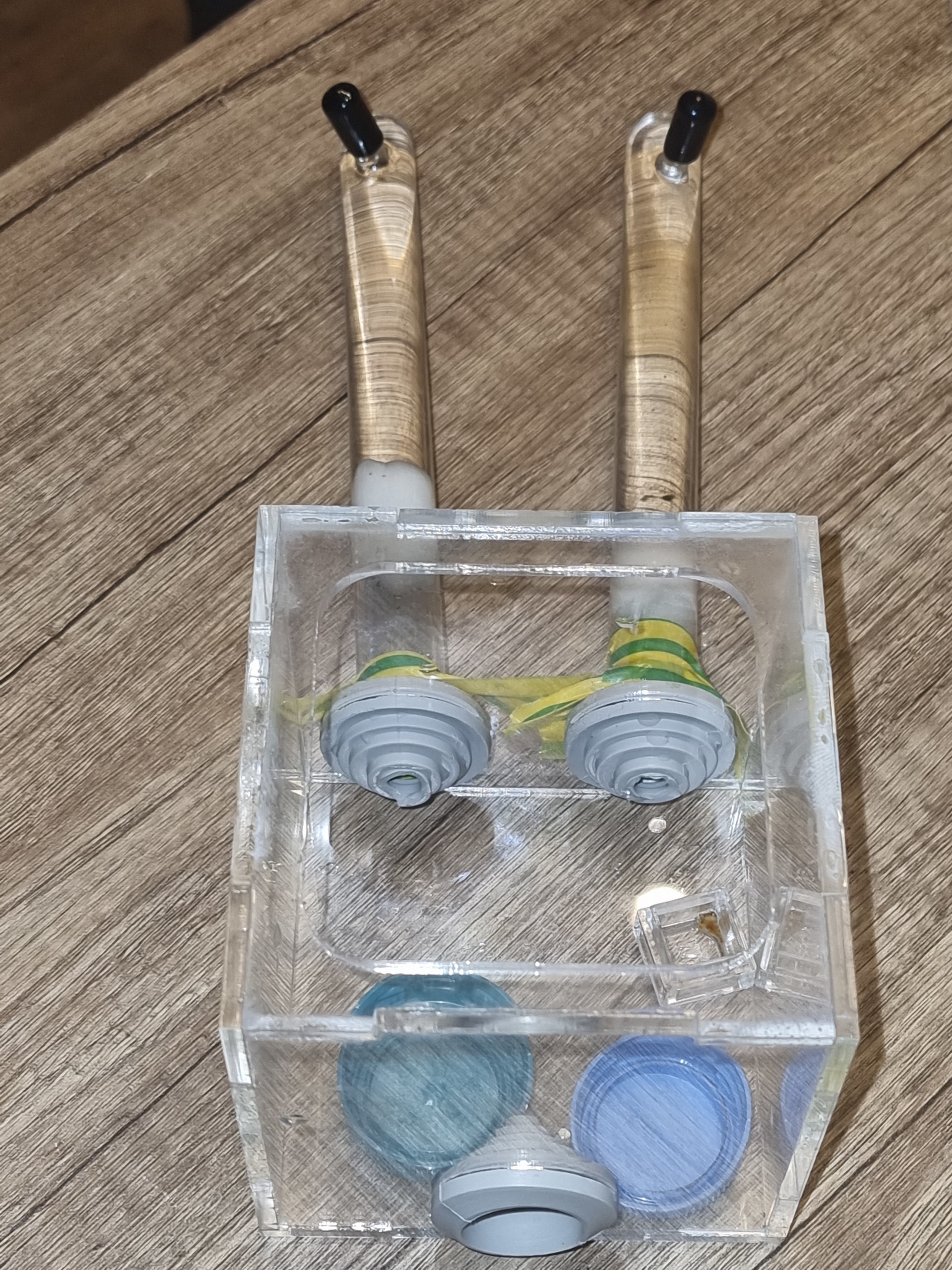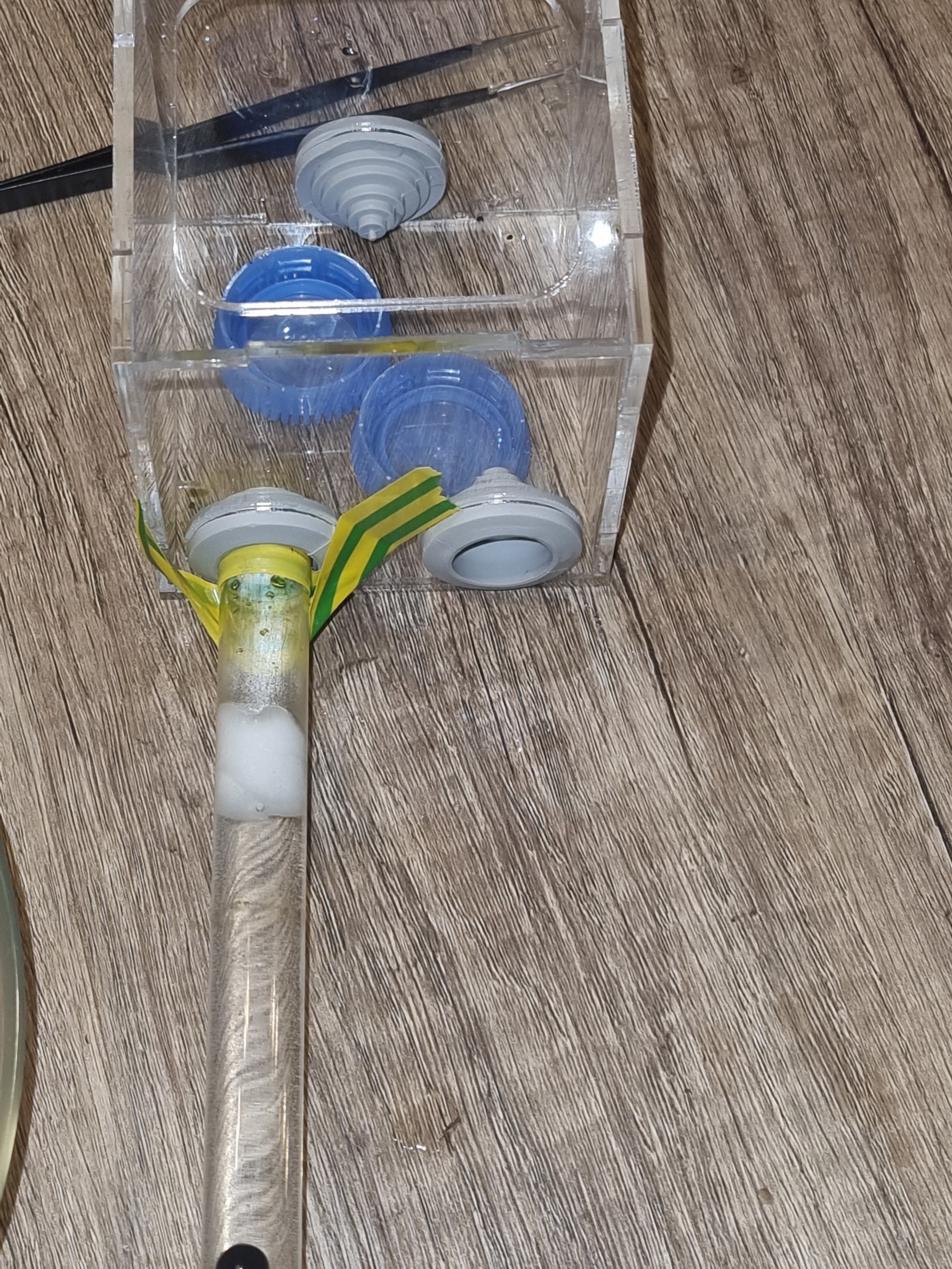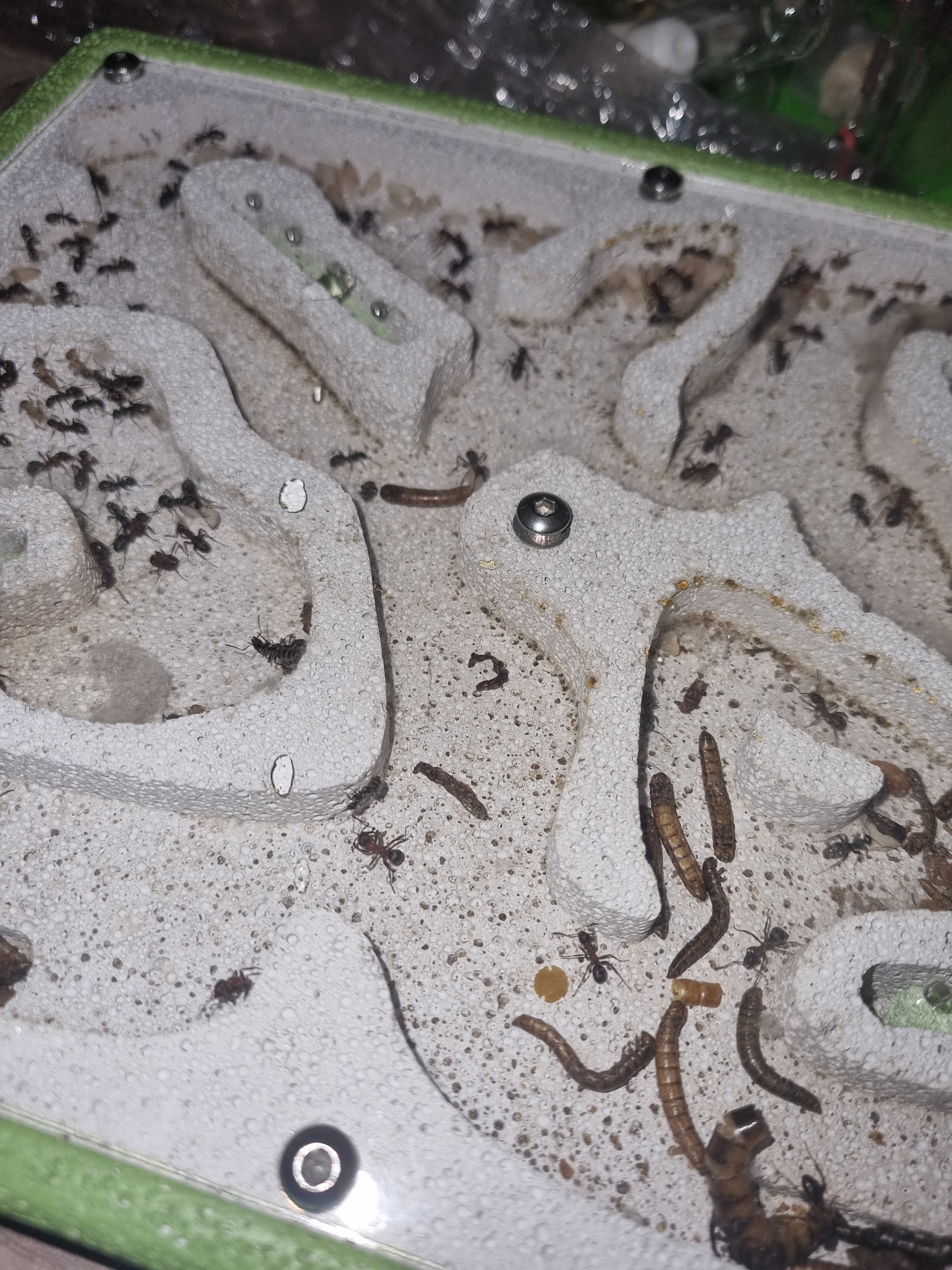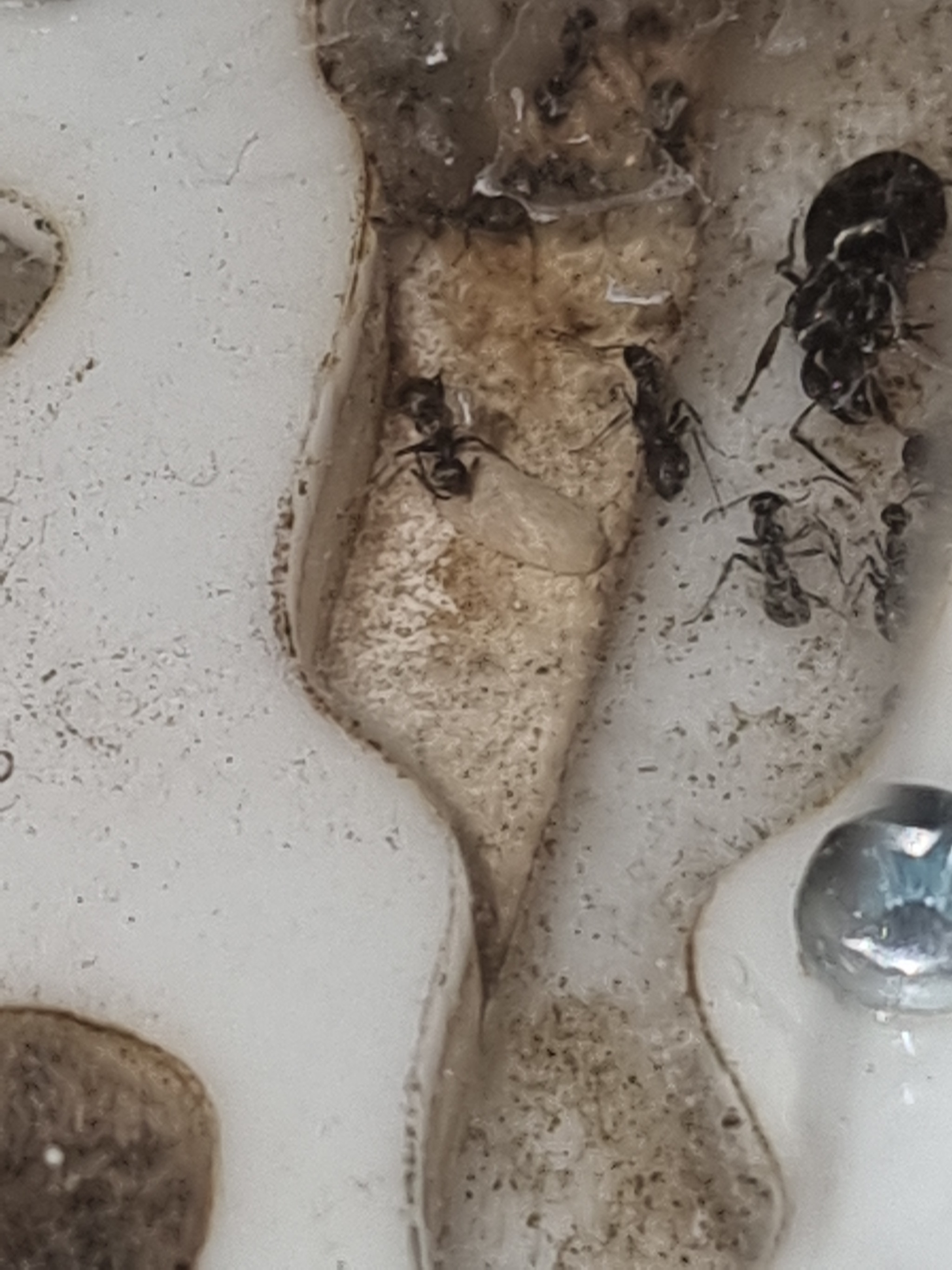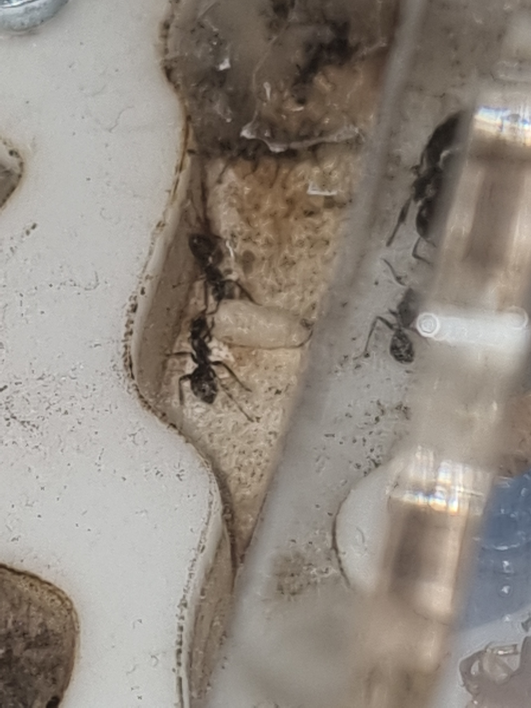 Чтоб быстрее аклиматизировались каждой подсадили по 2 муравья няньки вида фусок (чтоб не было агрессии муравьи предварительно были утоплены и выловлены - это одна из методик наряду с заморозкой подсадки муравьев разных родов одного семейства)