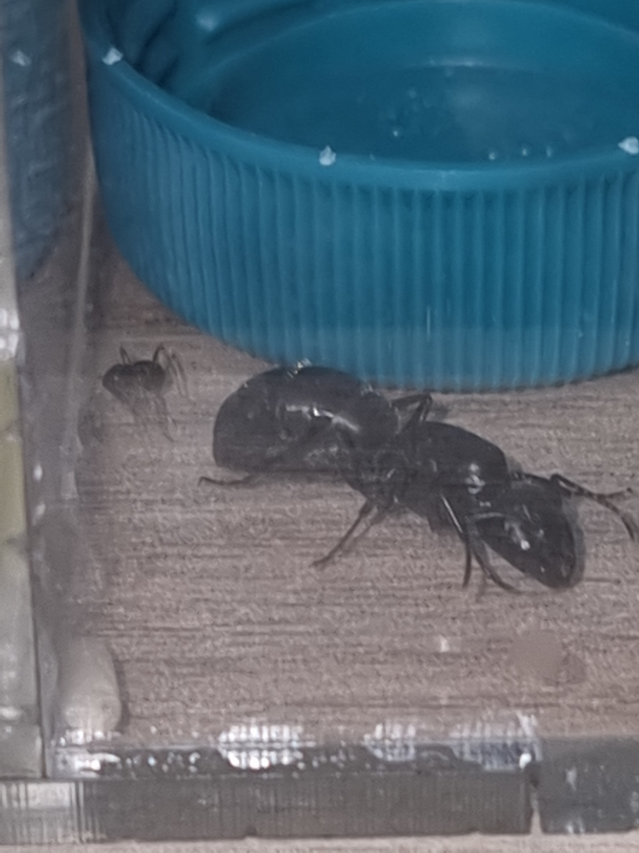 Со второй вышли проблемы - муравей тоже пытался её почистить но она его убила челюстями