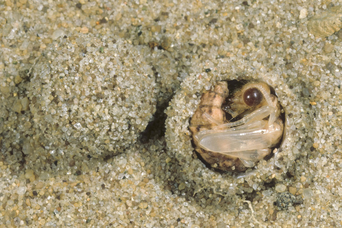 Такой длительный период существования в виде личинки обусловлен также тем, что поступление пищи довольно нестабильно. Чем меньше пищи, тем дольше личинка будет наедать массу, поскольку для окукливания и дальнейшей метаморфозы ей потребуется очень много энергии. Так что, если личинка оказалась не самой удачливой и обед у нее редок, то сидеть ей в ямке из песка долго. К тому же по началу, когда личинка только вылупилась, она еще очень маленькая, и потреблять в пищу способна только совсем мелких насекомых.