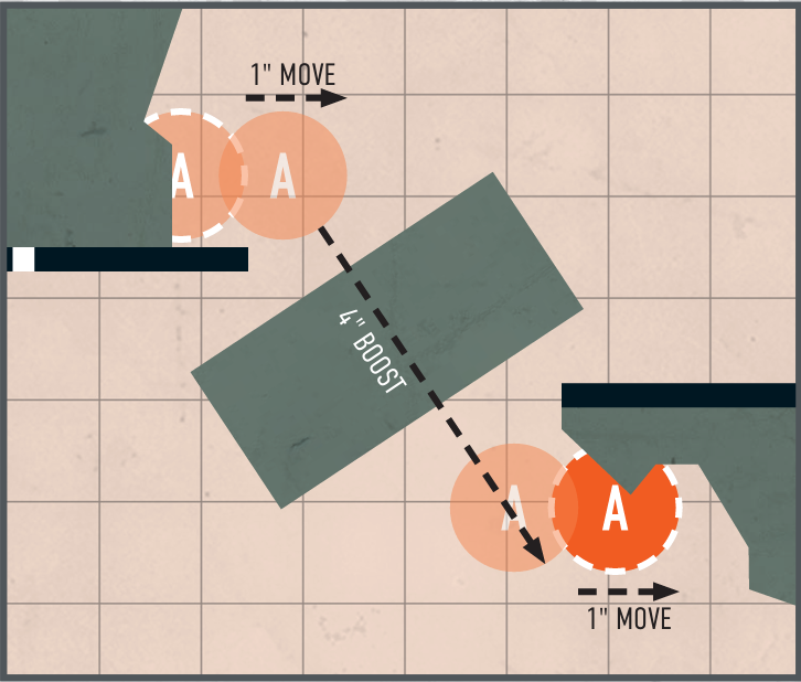 Действие «Схватить» за 1 APL. Выбираем противника в Boost Zone, объявляем это действие и вместе кидаем D6 и ОБА прибавляем свое текущее количество ран. В случае победы мы переставляем противника в свою зону контроля. Это действие можно совершить только при Отступлении или Перемещении. Это действие считается BOOST.