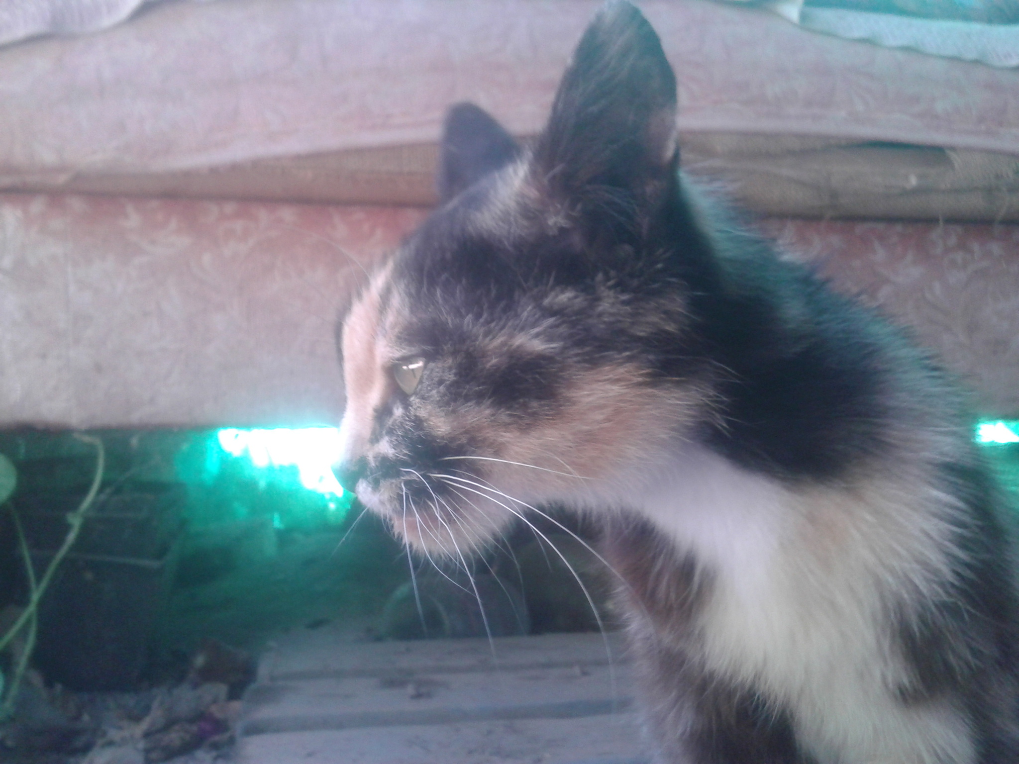 Моя кошка. Фотка на "тапке". Плюс (или минус кадру) поймала момент случайно. Буквально на бегу. Мурка сидела в раздумьях секунд 7-8. Позировать не любит. Как ни проси. Это просто ее что-то заинтересовало настолько, что проигнорировала меня с "тапком" на несколько секунд.
