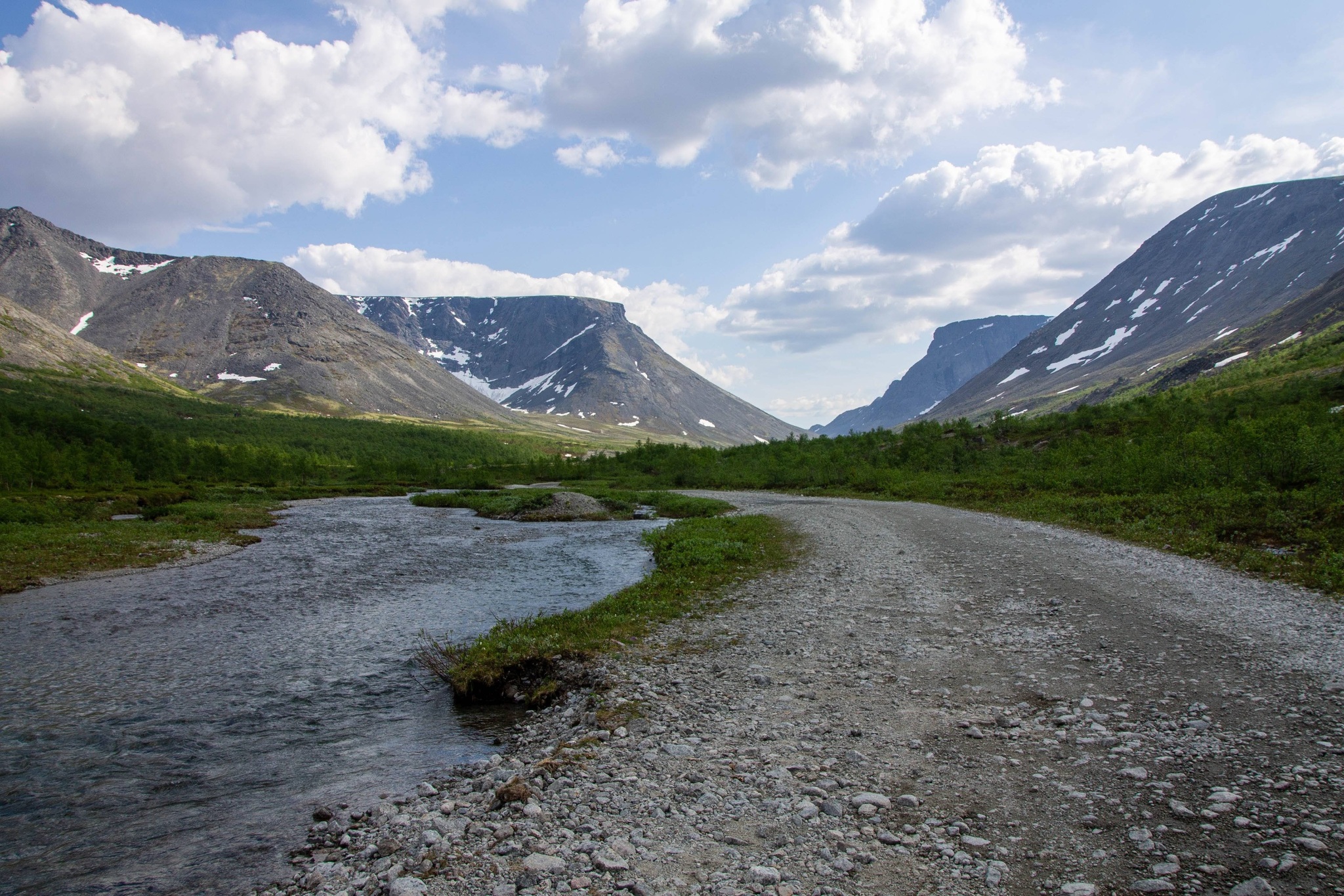 Нельзя так же не упомянуть 2 места в окрестностях Мурманска. Это безусловно роскошные Хибины, где даже в апреле катаются на лыжах. А летом можно например попробовать проехать от Кировска до озера Гольцовое.