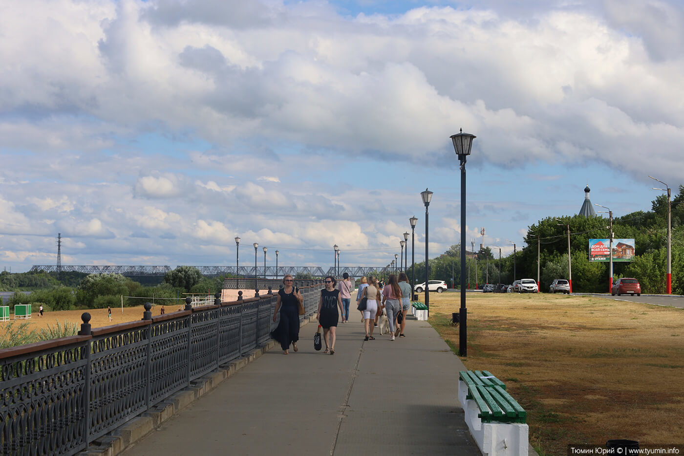 Набережная реки Ока. На набережной мало инфраструктуры для отдыха, например нет летних кафе. Добраться сюда можно либо на машине, либо пешком. Было бы хорошо если сюда ходил общественный транспорт, например автобус (хотя бы сезонно).