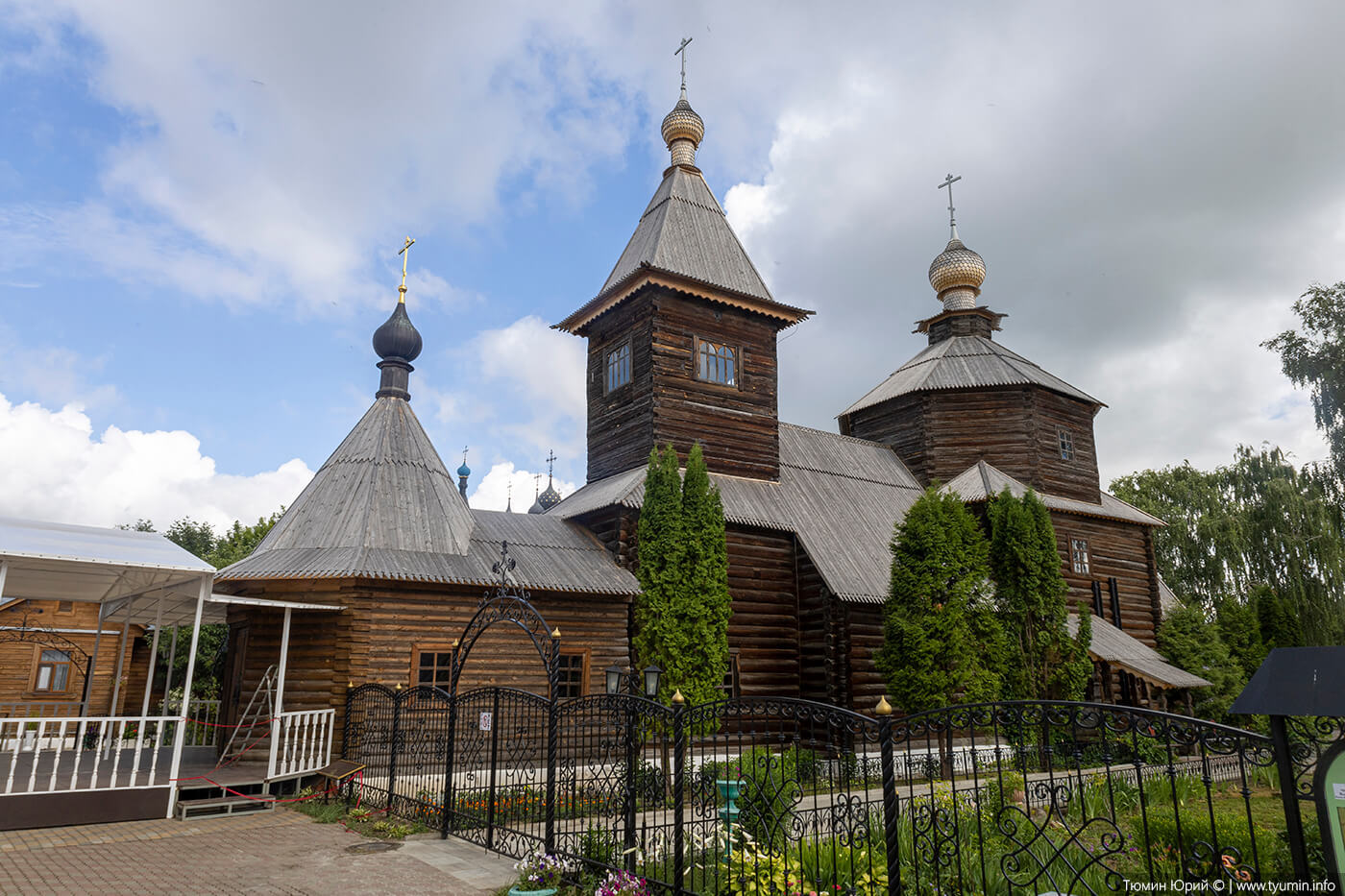 На территории монастыря можно увидеть деревянный храм Сергия Радонежского.