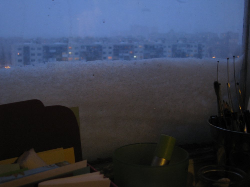 Класс ! Я был бы доволен, если бы мой подоконник так завалило(ну правильно, каникулы же. Из дома можно не выходить до следующего понедельника, так что снег - не помеха). :D