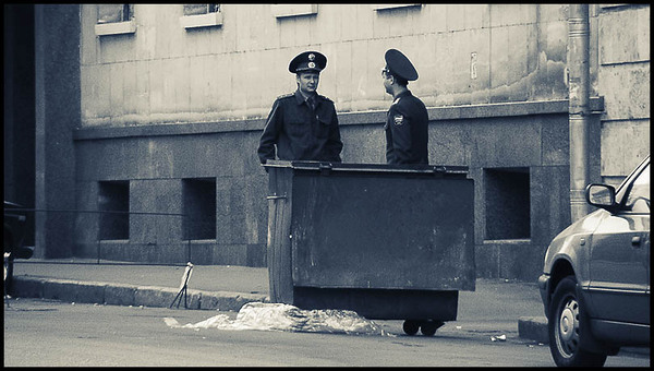 Вообщем, "досмотр" был реально на уровне Гистапо, только не хватало ударов дубинкой - Носки снимал, стельки вынимал, сумку вытряхивал- это очень смешно...поскольку, как я упоминал, я в то время болел, и ходил в поликлинику, как на работу, и у меня скопились упаковки от бахил... - и я как дурак, кидал их всумку:pardon:, каково было лицо полицейских, когда они увидели 30 штук упаковок от бахил, которые выглядят - вы поняли как что...:ovca:- их глаза выглядили на "на пять пятаков", либо им погоны виделись, либо денежки - одному богу известно, но это просто смешно было... однако вернёмся к происходящему, как вы помните я был на едине с обыскивающим меня сержантом, но тут появились два понятых:shok:... и как вы думаете, кто это были? - добропорядочные граждане?... хотелось бы надеяться на это... нет дорогой читатель, это были два милицейских....:rofl:....