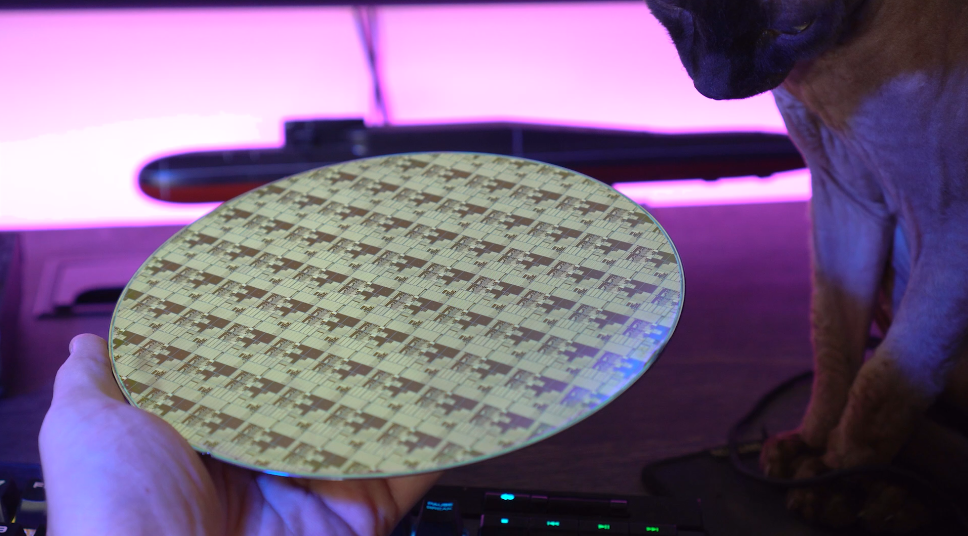 На одной пластине можно вытравить десятки и даже сотни будущих процессорных кристаллов. Из-за различного преломления света в их слоях выглядят такие вафли очень красиво, их частенько показывают на презентациях, а при желании такие можно найти на Ali за пару тысяч рублей. Разумеется, китайцы продадут вам бракованную пластину, ибо стоимость работоспособной вафли легко может доходить до пары сотен тысяч долларов.