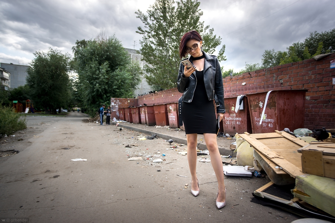 Пока фоткали, кого только не было, - все вдруг ринулись в этот момент выкинуть мусор или поковыряться в нем. Вот, например, мужик не парясь влез в кадр и что-то там начал смотреть.