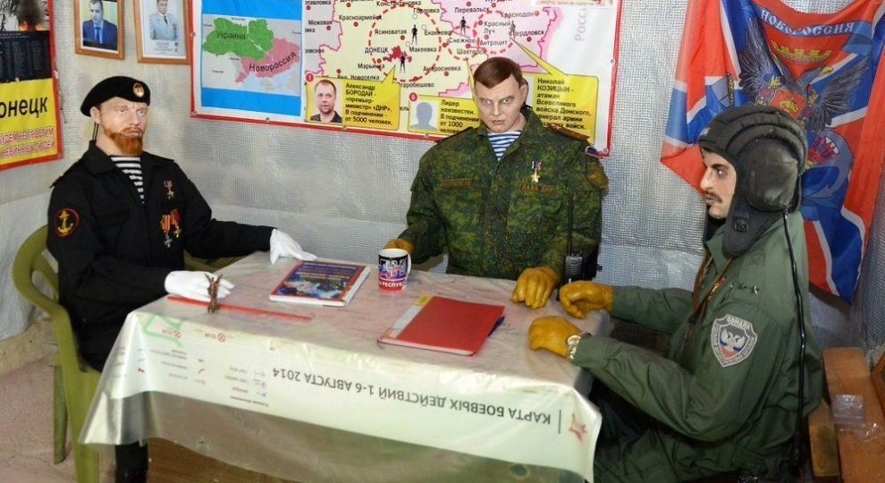 В музее в ДНР появилась экспозиция с лидерами повстанцев Моторолой, Захарченко и Гиви.. источник https://m.lenta.ru/news/2019/07/02/scared/