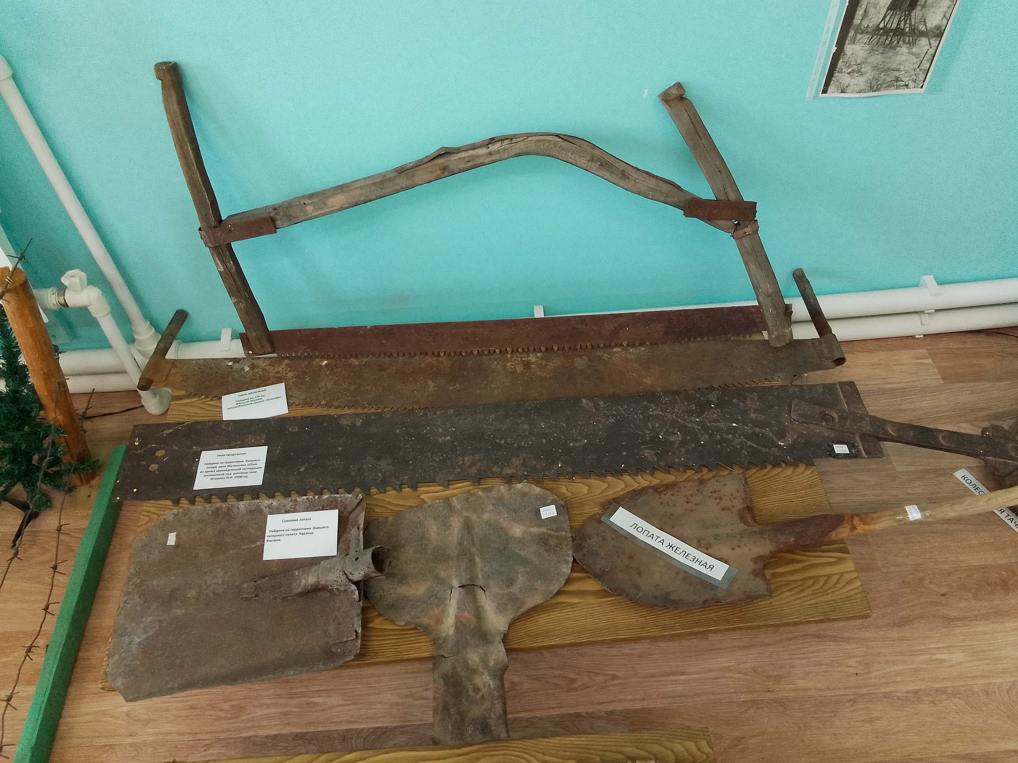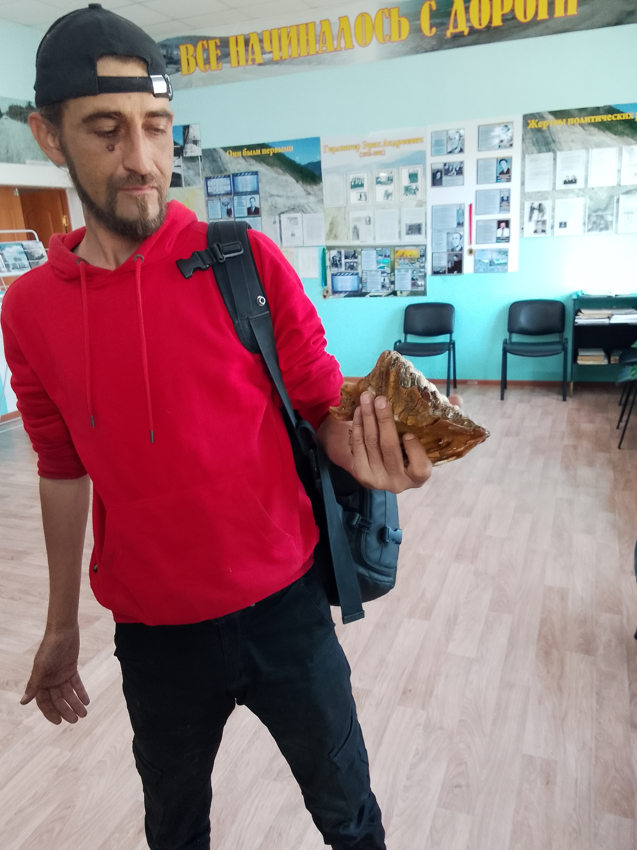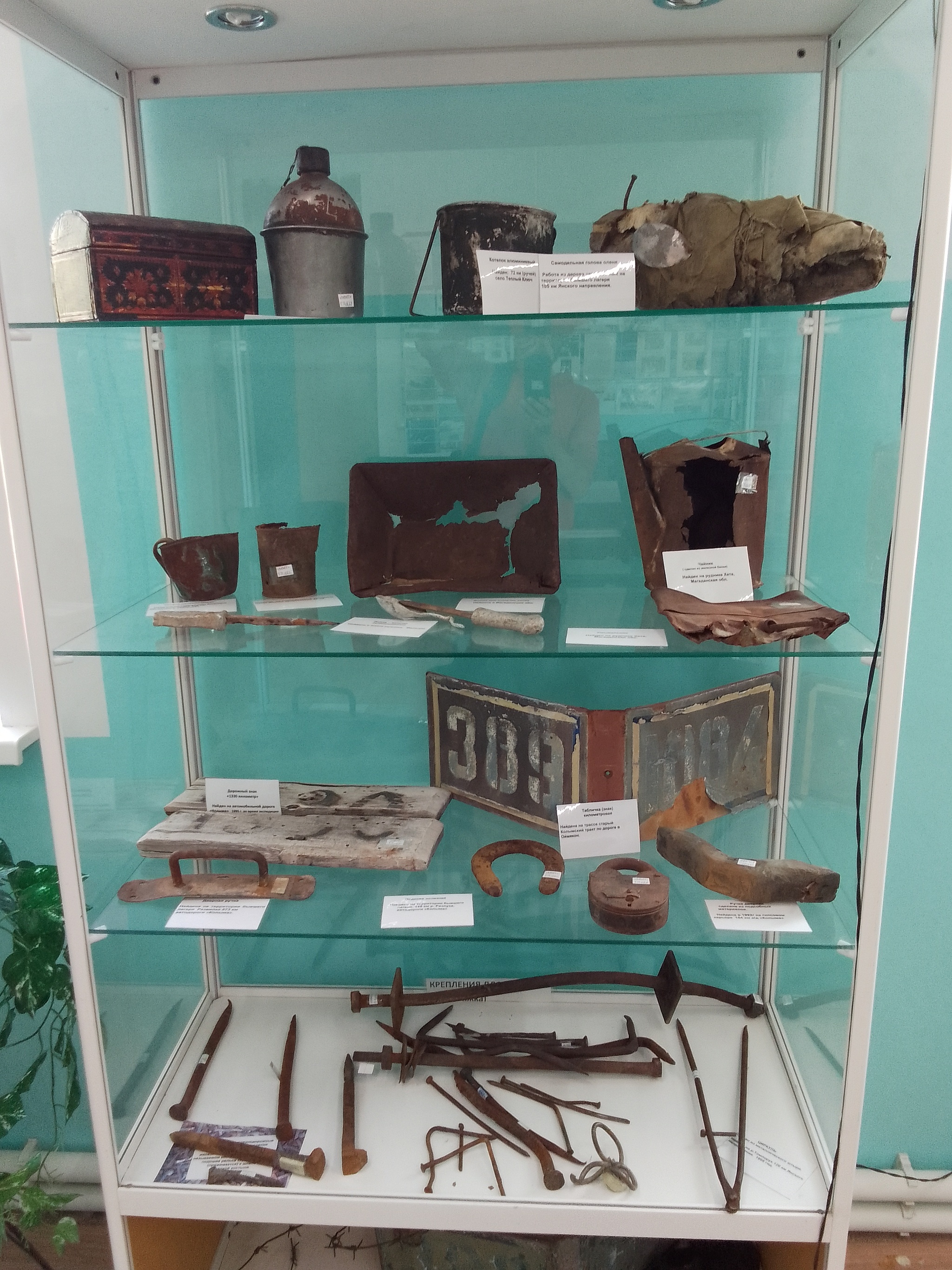 Всего одна комнатка, при сельском клубе. В музее представлены некоторые виды орудий труда, при помощи которых заключенные строили эту дорогу, а также фрагменты их одежды и предметы быта. Еще есть несколько костей мамонта и зуб мамонтенка, кстати вот и он, у меня в руках: