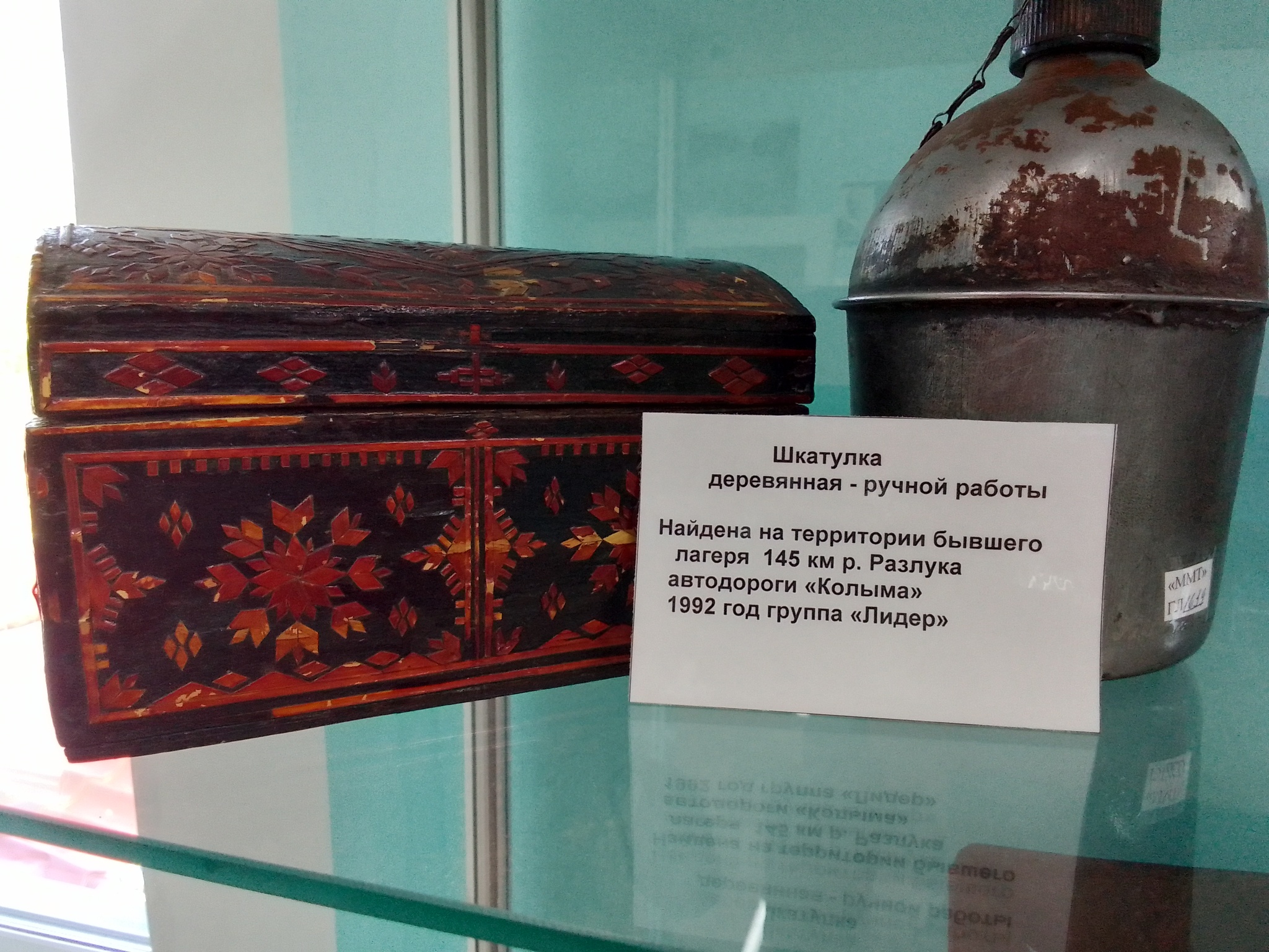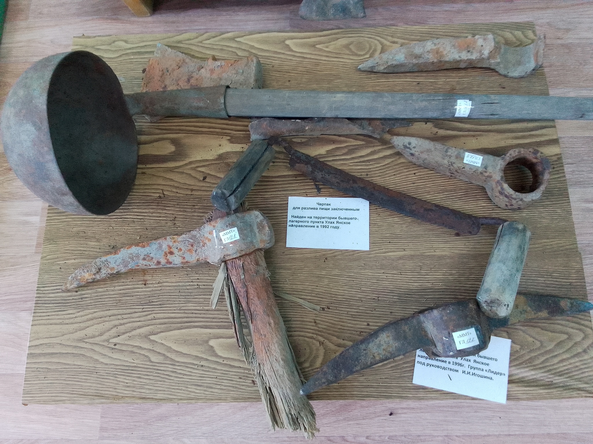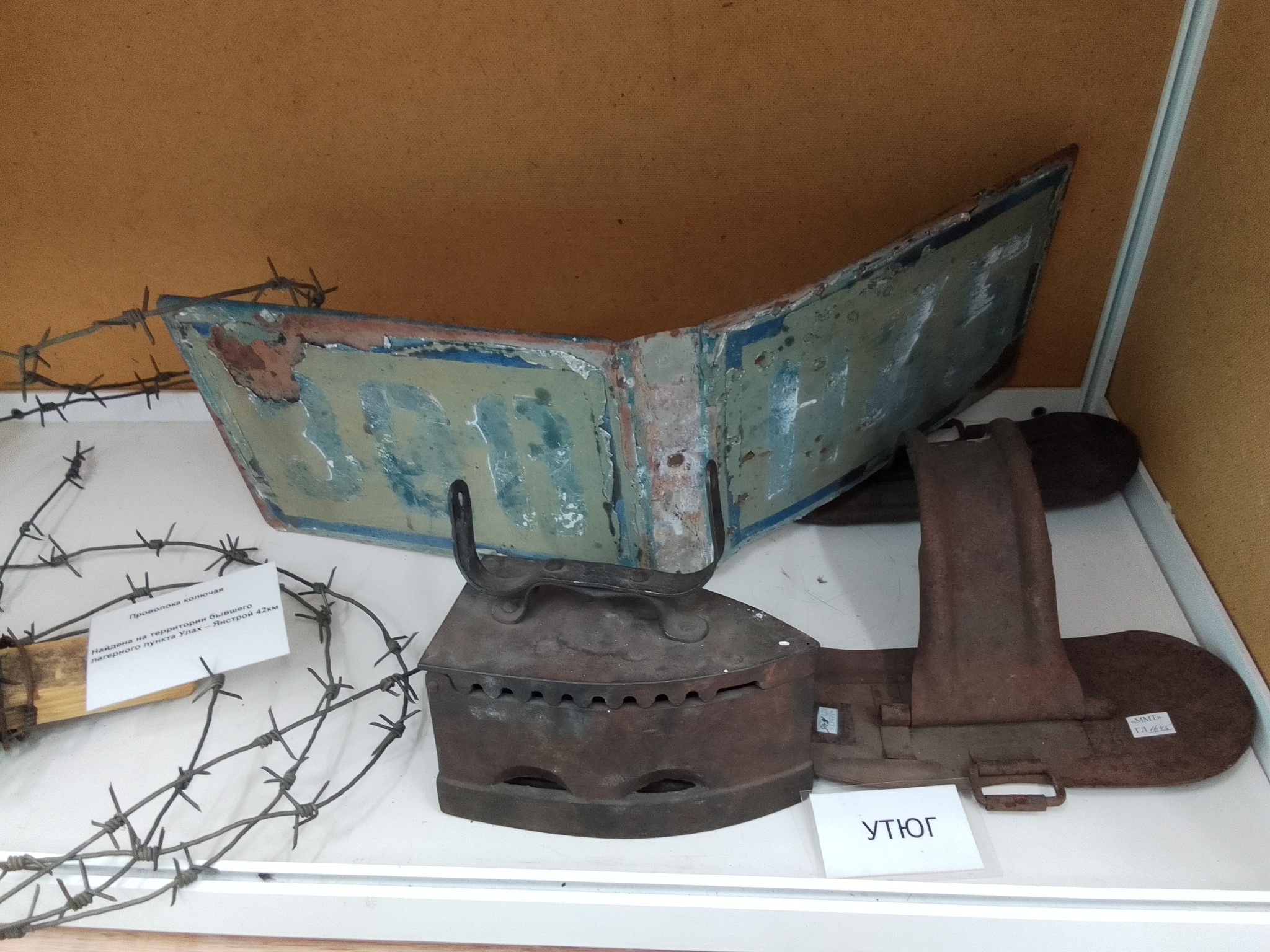 Всего одна комнатка, при сельском клубе. В музее представлены некоторые виды орудий труда, при помощи которых заключенные строили эту дорогу, а также фрагменты их одежды и предметы быта. Еще есть несколько костей мамонта и зуб мамонтенка, кстати вот и он, у меня в руках: