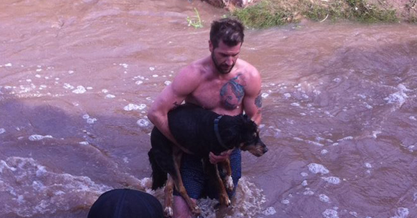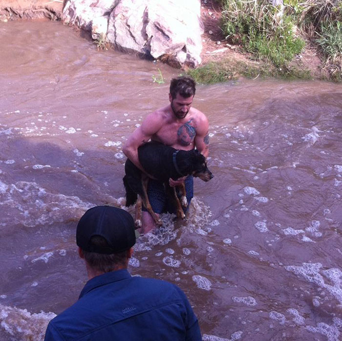 Сара Мельникофф как и обычно прогуливалась по берегу реки вместе с 13-летней любимицей Карли, но то утро женщина еще долго будет вспоминать с ужасом: разбушевавшиеся воды просто снесли собаку и начали тянуть ее на дно. Женщина уже хотела прыгнуть за Карли, как к ней на помощь пришел незнакомец. Мужчина быстро разделся до нижнего белья и бросился в холодную реку.