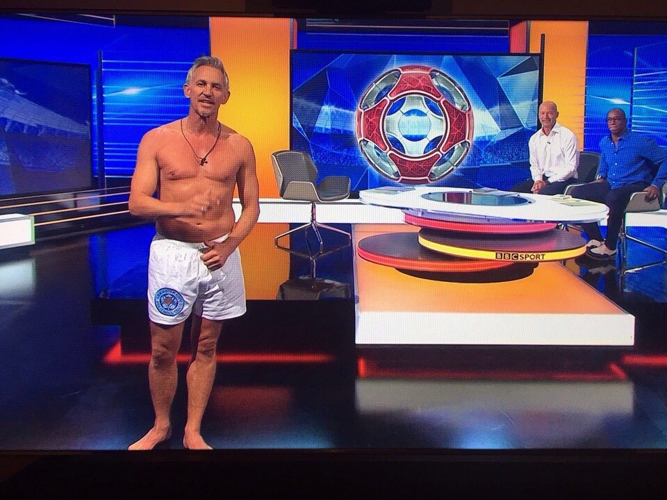8 azyam911 Мужик сказал-мужик сделал 9 лет назад Гари Линекер исполнил своё обещание провести эфир "Match of the Day" на BBC в труселях, в том случае, если "Лестер Сити" выиграет чемпионский титул АПЛ! Гари Линекер Футбол Лестер Сити Английская Премьер-лига