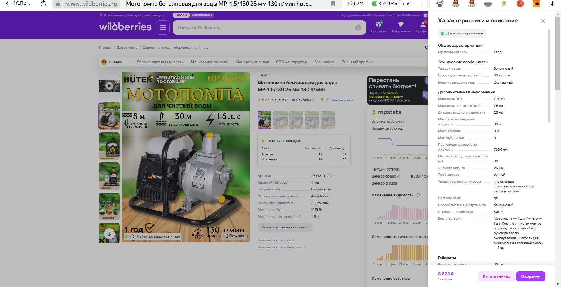 Сейчас на ВБ какая то новая что ли появилась, по другому называется. Называется типа Мотопомпа бензиновая для воды МР-1,5/130. 8 799 рублей стоит на полке.