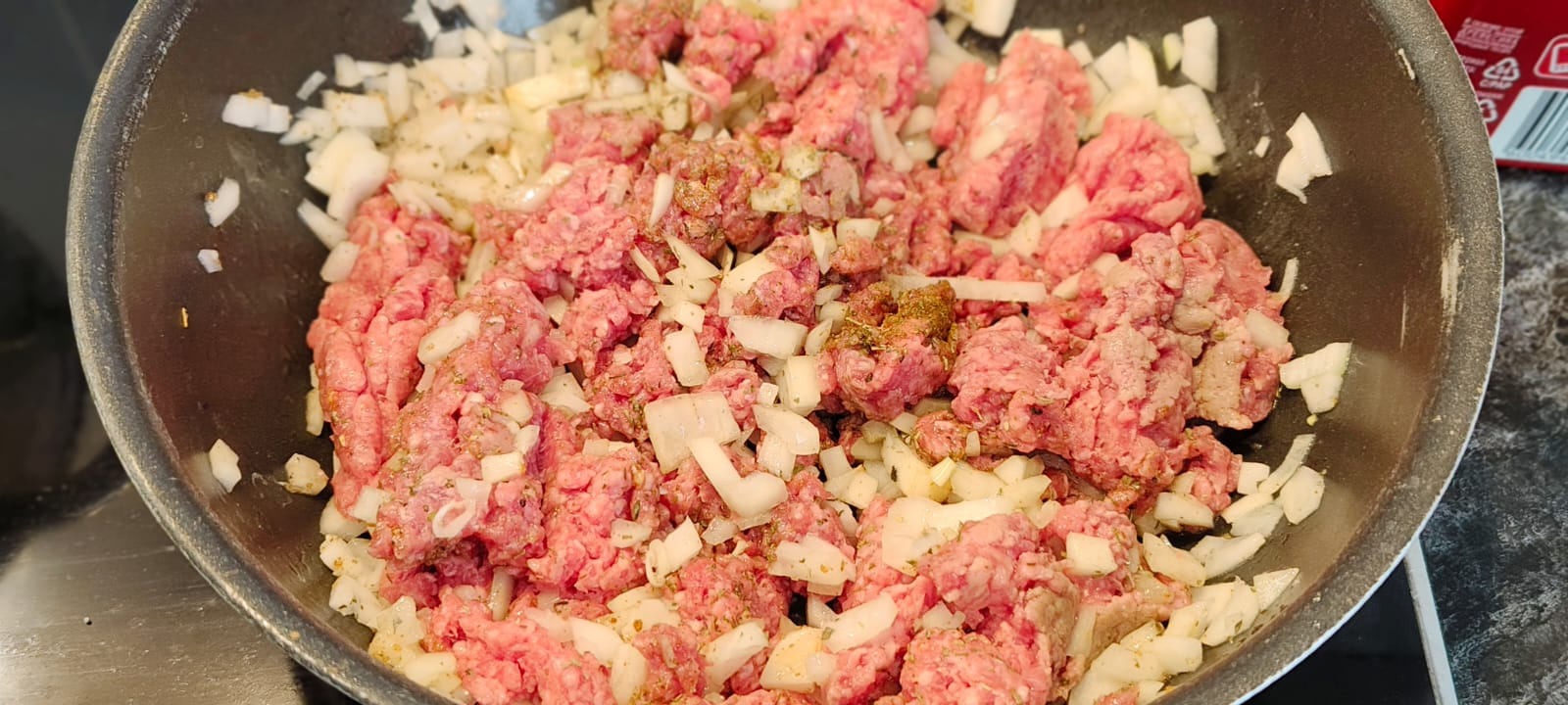 Фарш солю перчу, добавляю нарезанный лук и чеснок. Добавил специи которых нет на первом фото. Этона любителя. Ставлю обжариваться на растительном масле