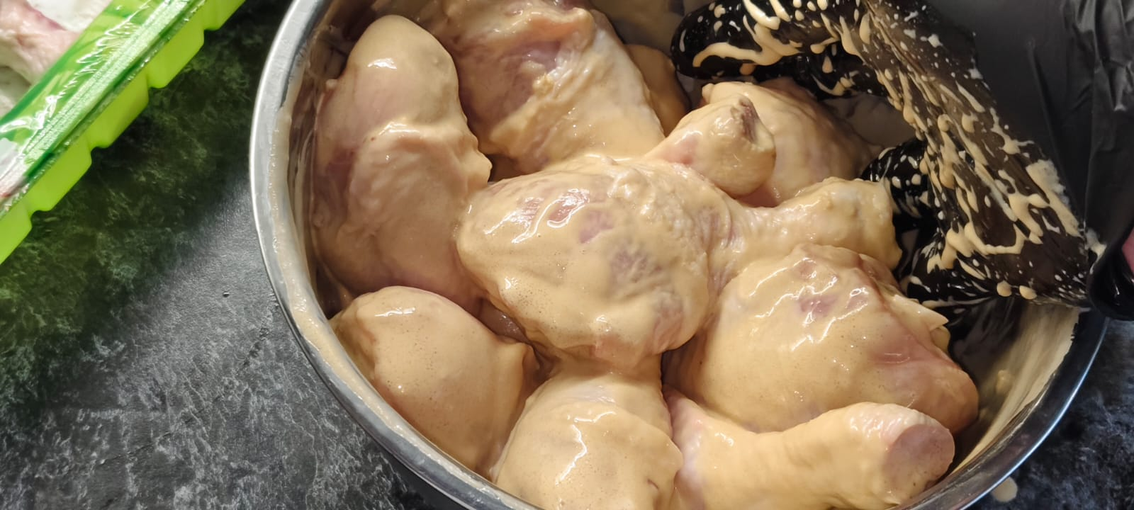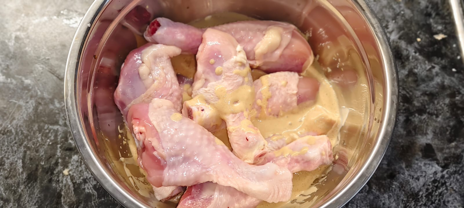 Ноги куриные, сметана, чеснок, масло, соевый соус, вустерский соус.