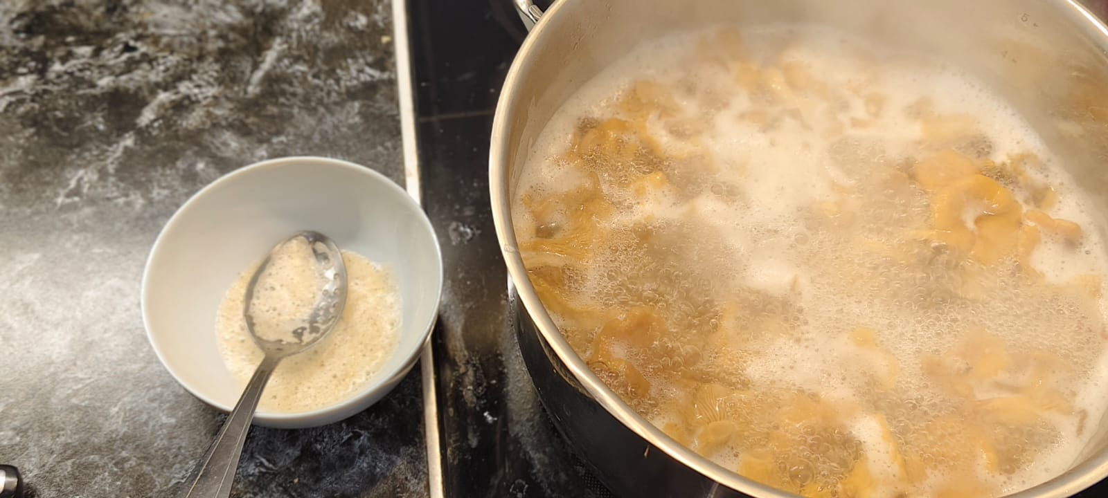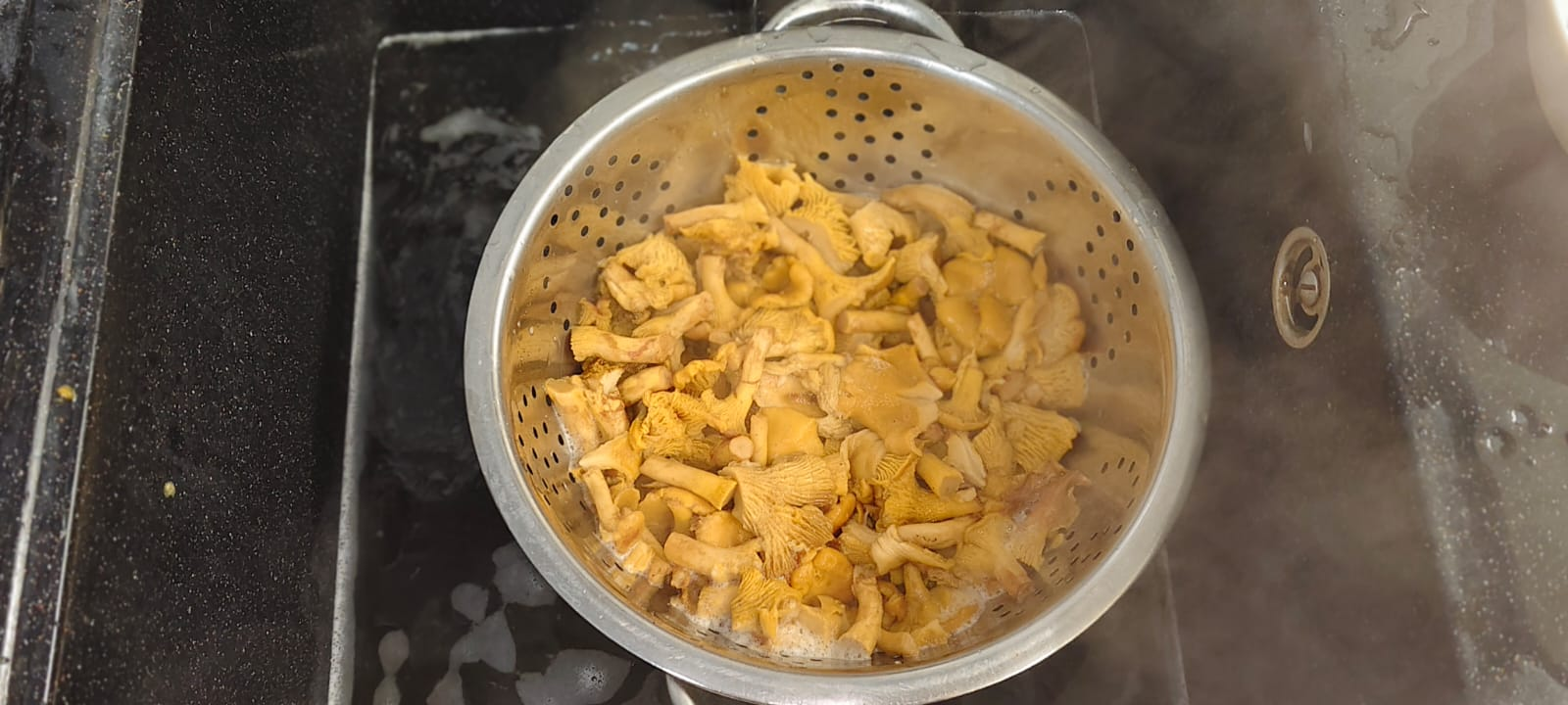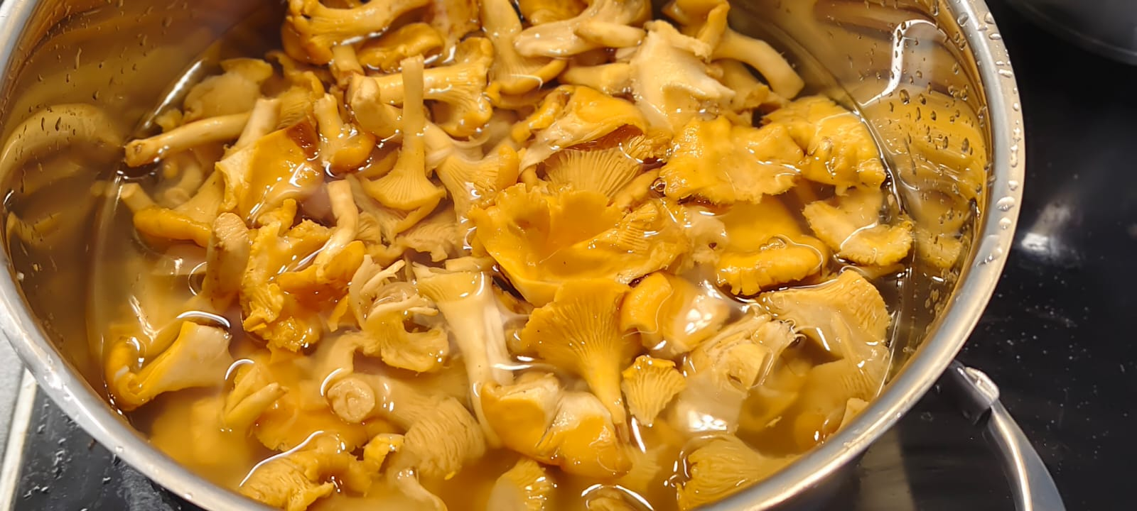 Грибы промываю от лесного мусора. Крупные режу. Заливаю водой ставлю вариться. Буквально на 5-7 минут кипения.