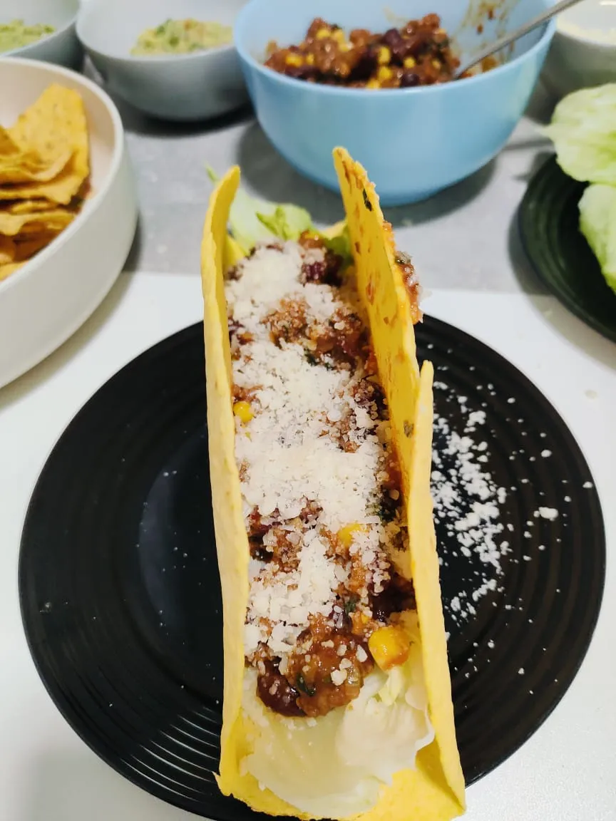 Итак представляю вам соус Гуакамоле с чипсами Начос и лепёшки Тако с начинкой