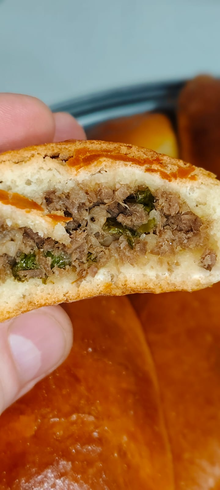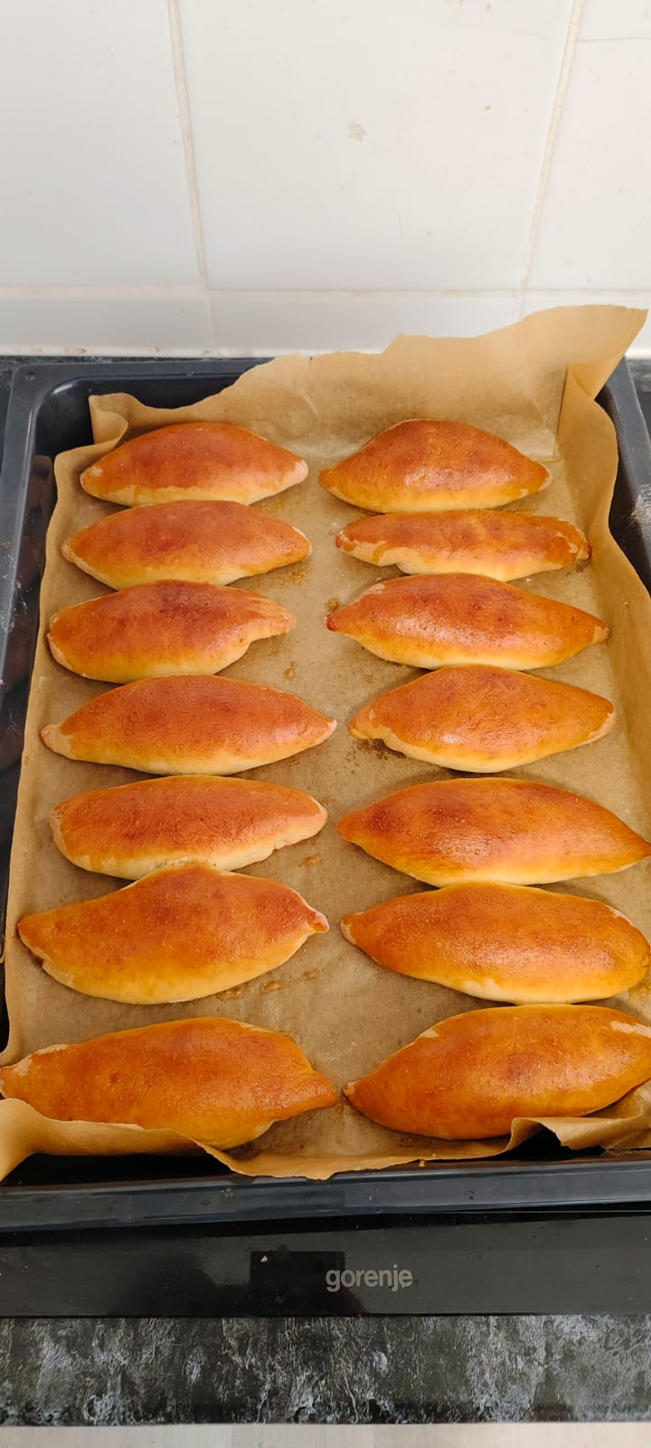 Сегодня варил большой кусок говядины для шурпы ( лопатка на кости). Половина вареного мяса ушла в суп, половину оставил для пирожков. И вот! Пирожки на ужин!