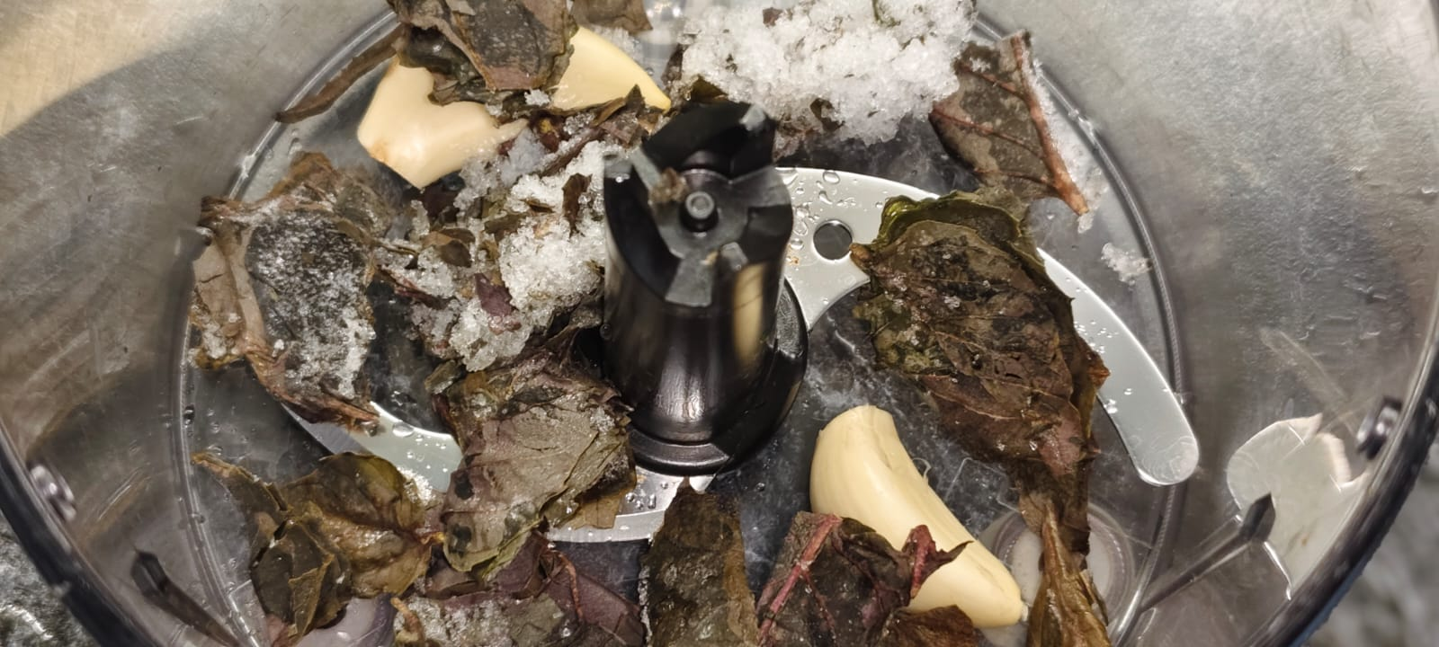 Пробиваю в блендере до однородного состояния. Потом для цвета добавил петрушки она на первом фото отсутствует