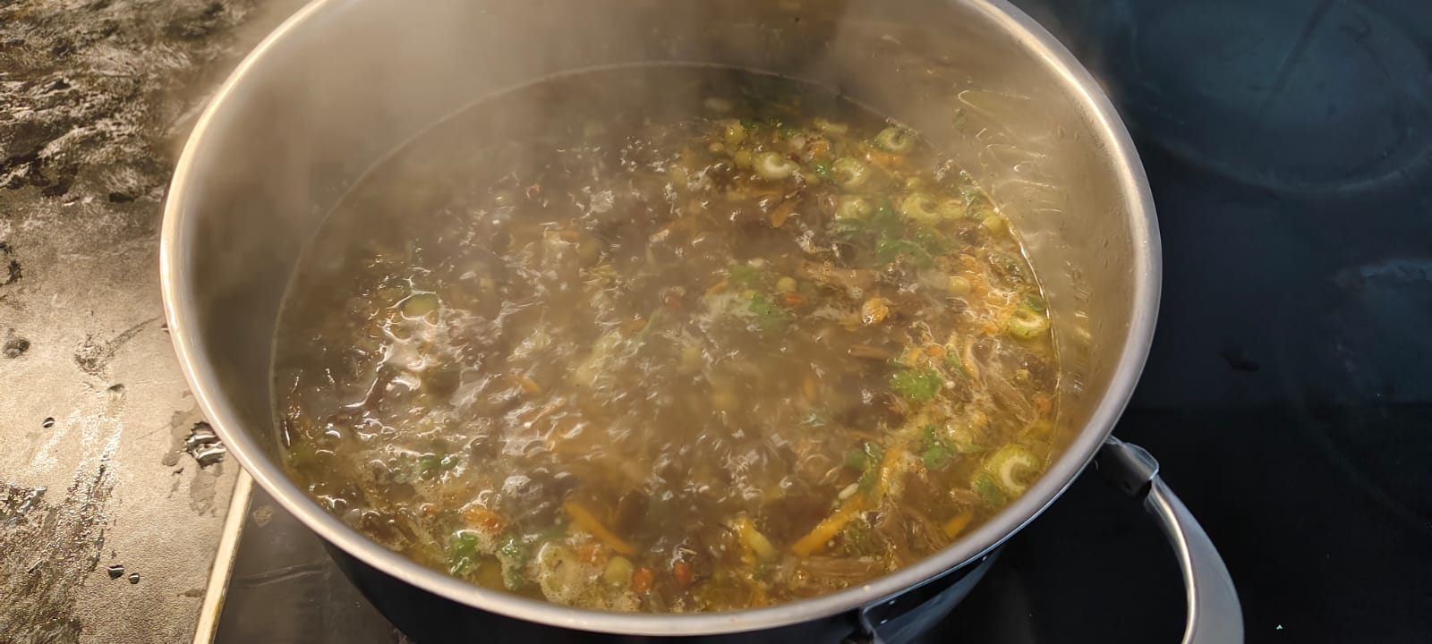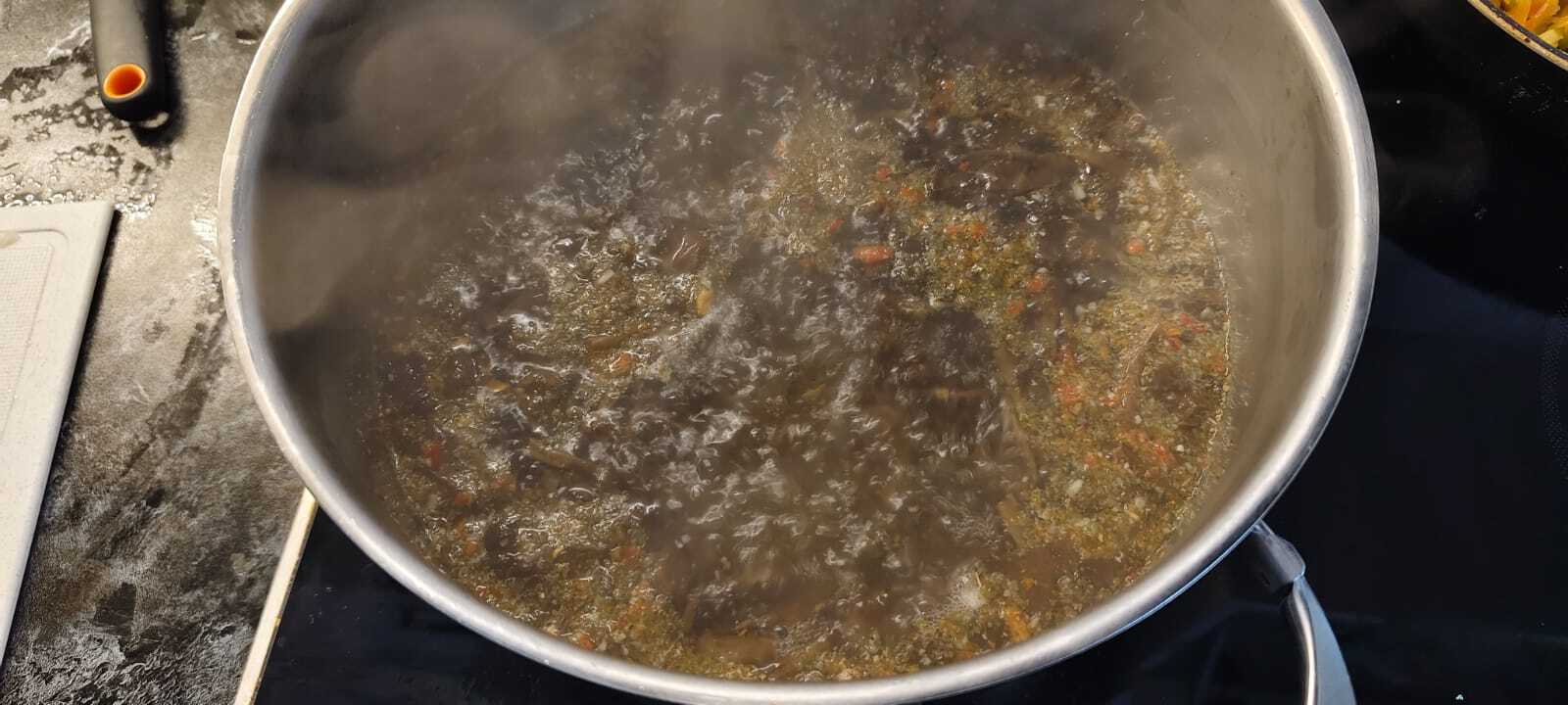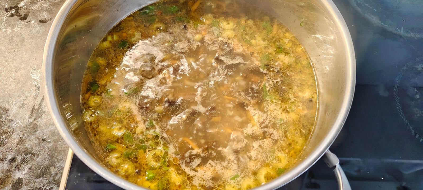 Опята ( отваренные), лук, морковь, картофель, сельдерей, чеснок, рис, горошек, специи, зелень, масло. соль.